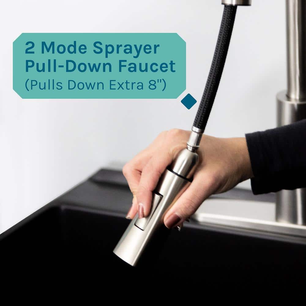 High-Arc Faucet: Comes with a dual function pull-down spray head for versatile use.