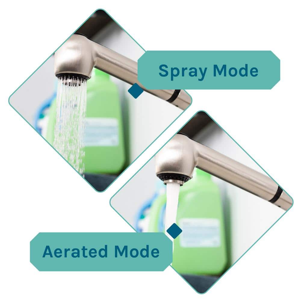 A: The pull-out faucet offers dual spray functions—standard flow and spray. Its lead-free waterways combine with a stainless steel finish for high performance and style.