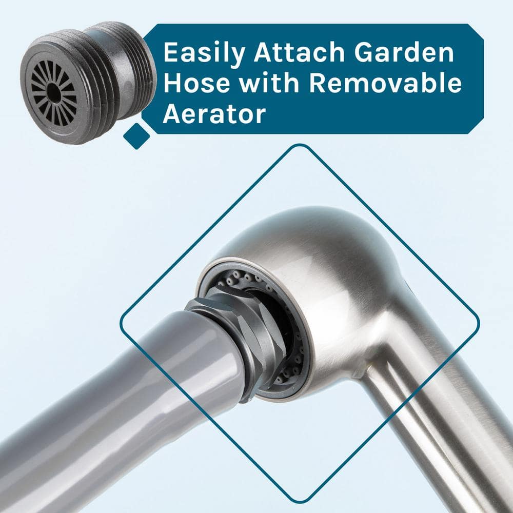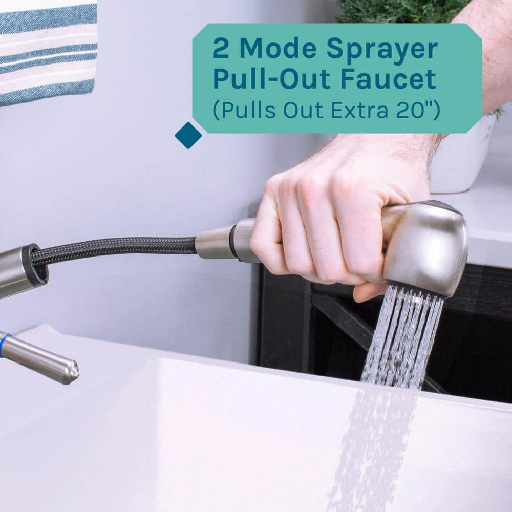 Versatile Faucet: Includes a pull-out faucet with dual spray functions and a stainless steel finish.