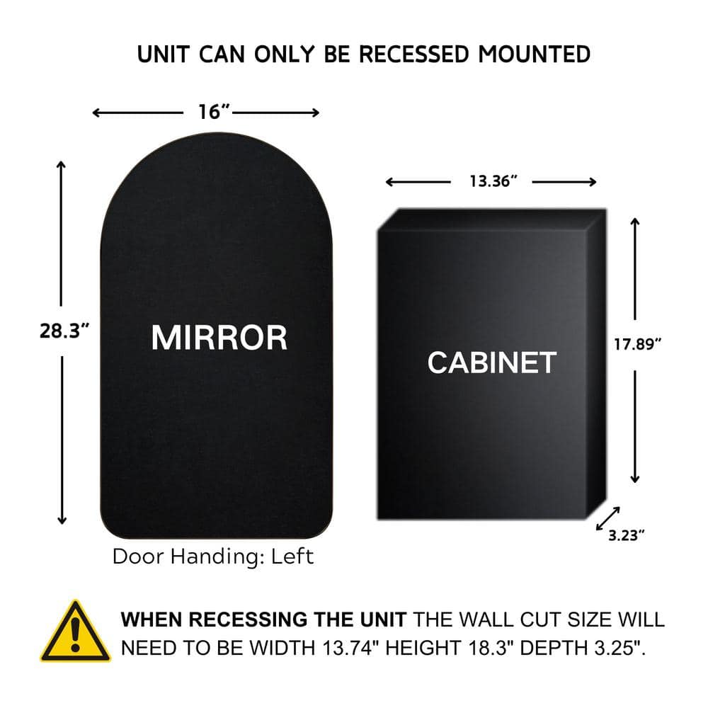 TEHOME Aristes 16 in. W x 28.3 in. H Arched Metal Framed Recessed Medicine Cabinet with Mirror for bathroom in Gold