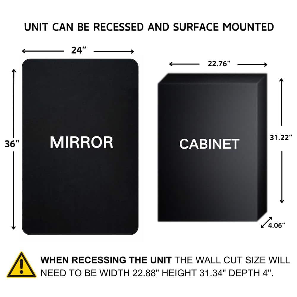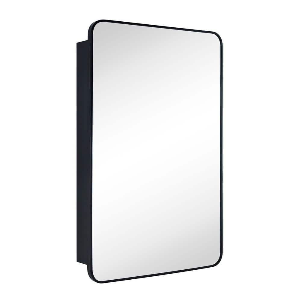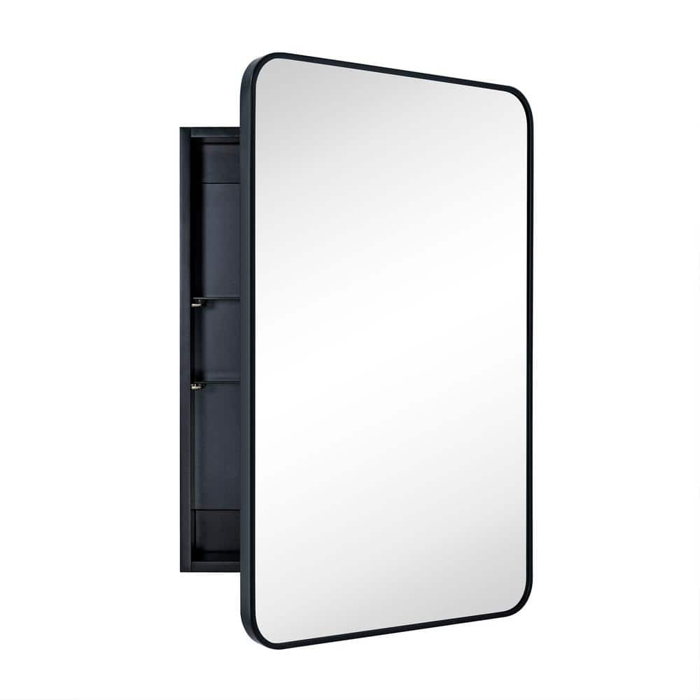 TEHOME Garnes 24 in. W x 36 in. H Rectangular Recessed or Surface Mount Metal Framed Medicine Cabinet with Mirror in Black