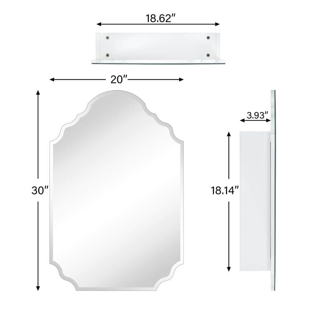 TEHOME Tomace 20 in. W x 30 in. H Novelty/Specialty Irregular Arched Metal Beveled Frameless Medicine Cabinet with Mirror
