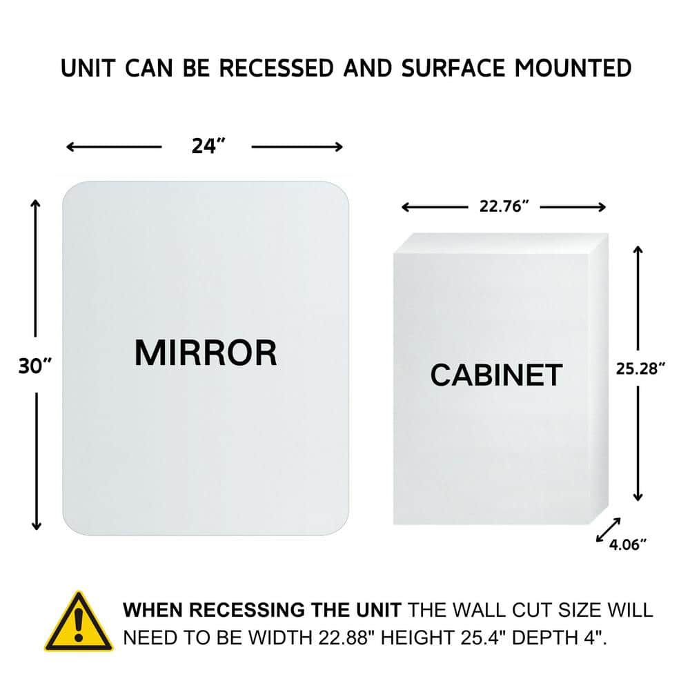 TEHOME Tomace 24 in. W x 30 in. H Rectangular Recess and Surface Mount Frameless Medicine Cabinet with Mirror