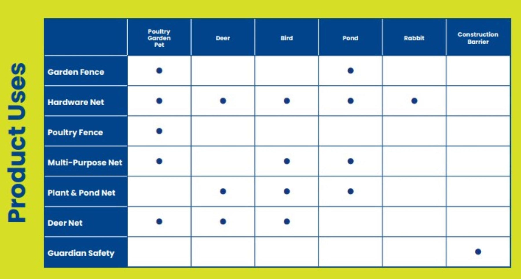 • Plastic Alternative: A recyclable, eco-friendly choice over traditional metal chicken wire fencing.