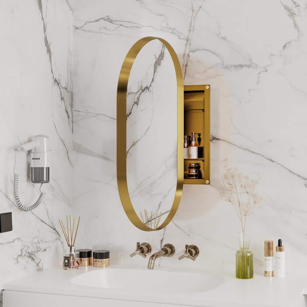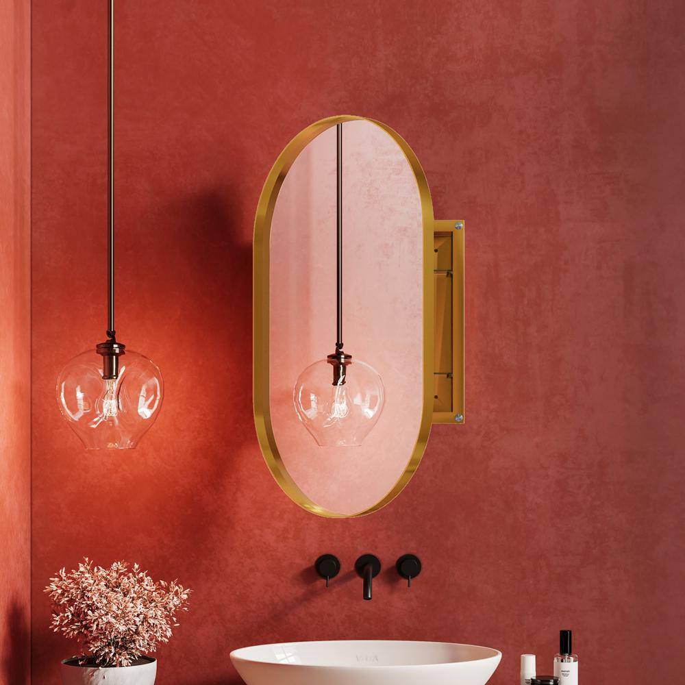 Bring a touch of elegance and functionality to your bathroom by adding the Tenleaf Gold Oval Medicine Cabinet to your cart today!