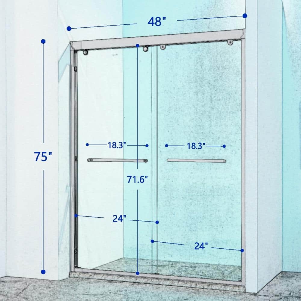 A: You can adjust the width of the shower door by cutting the frame to fit within 44 to 48 inches. It's also designed to support wall tilt installation within 1/2 inch.