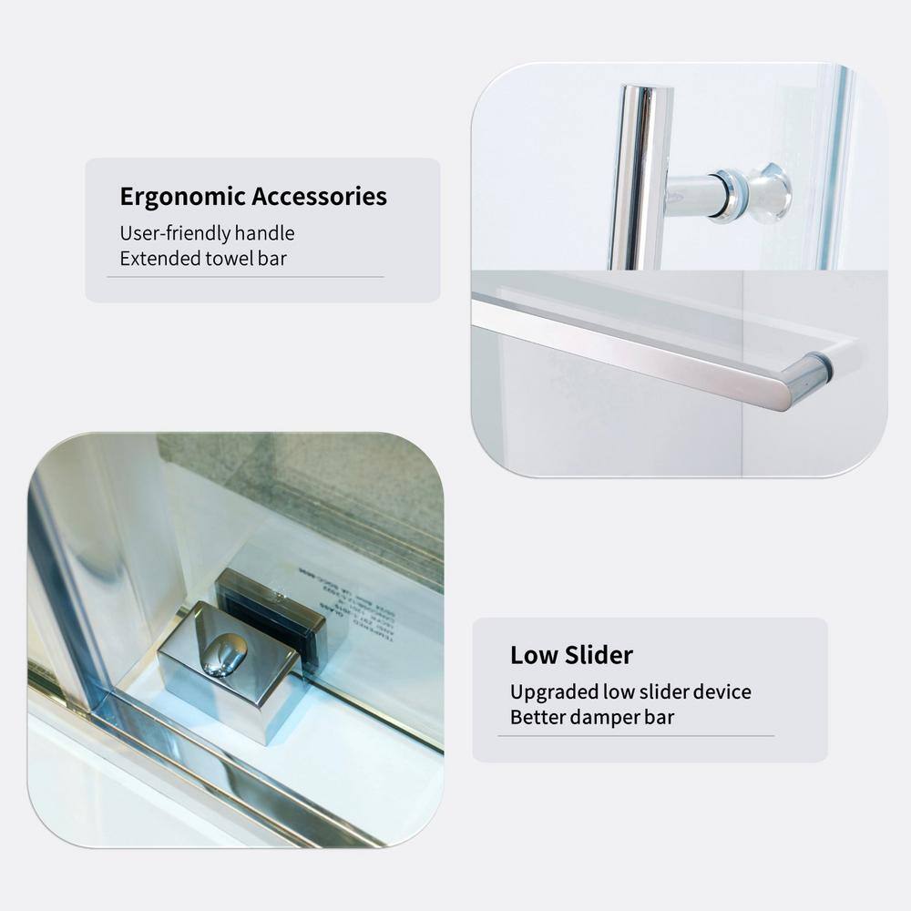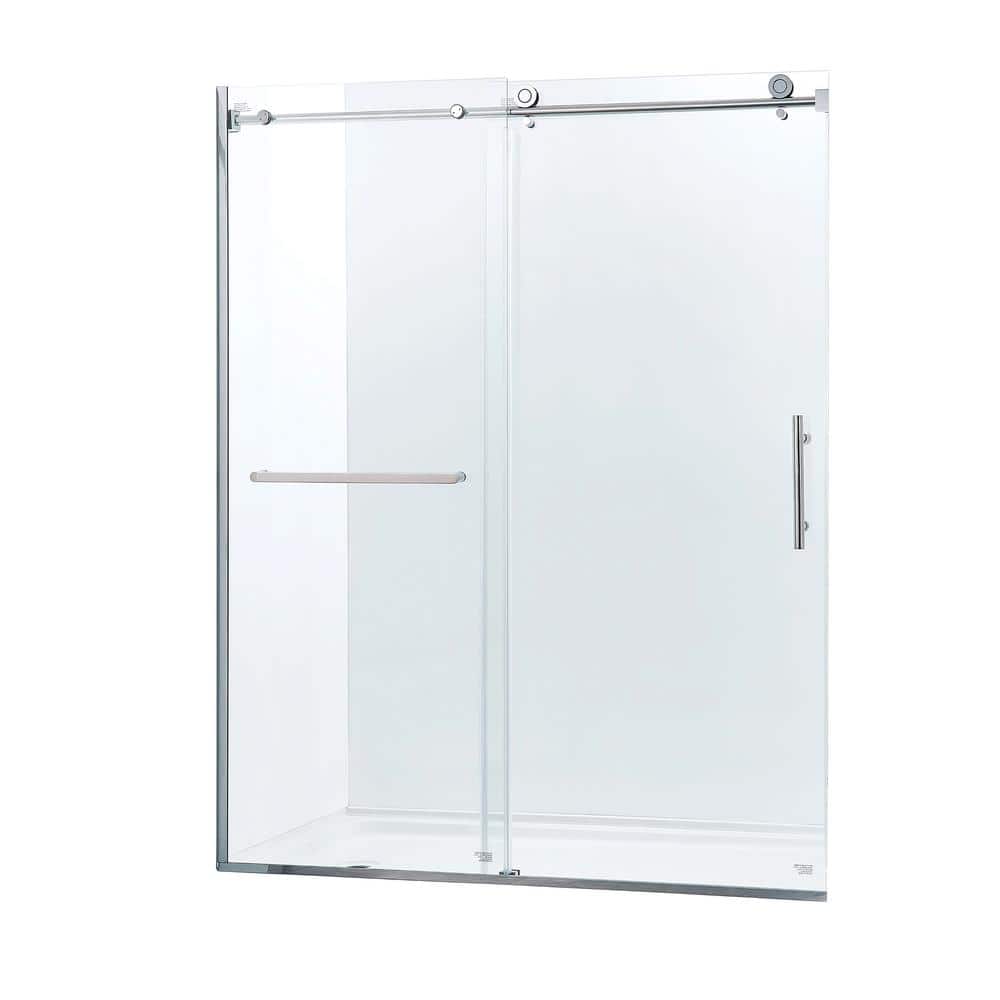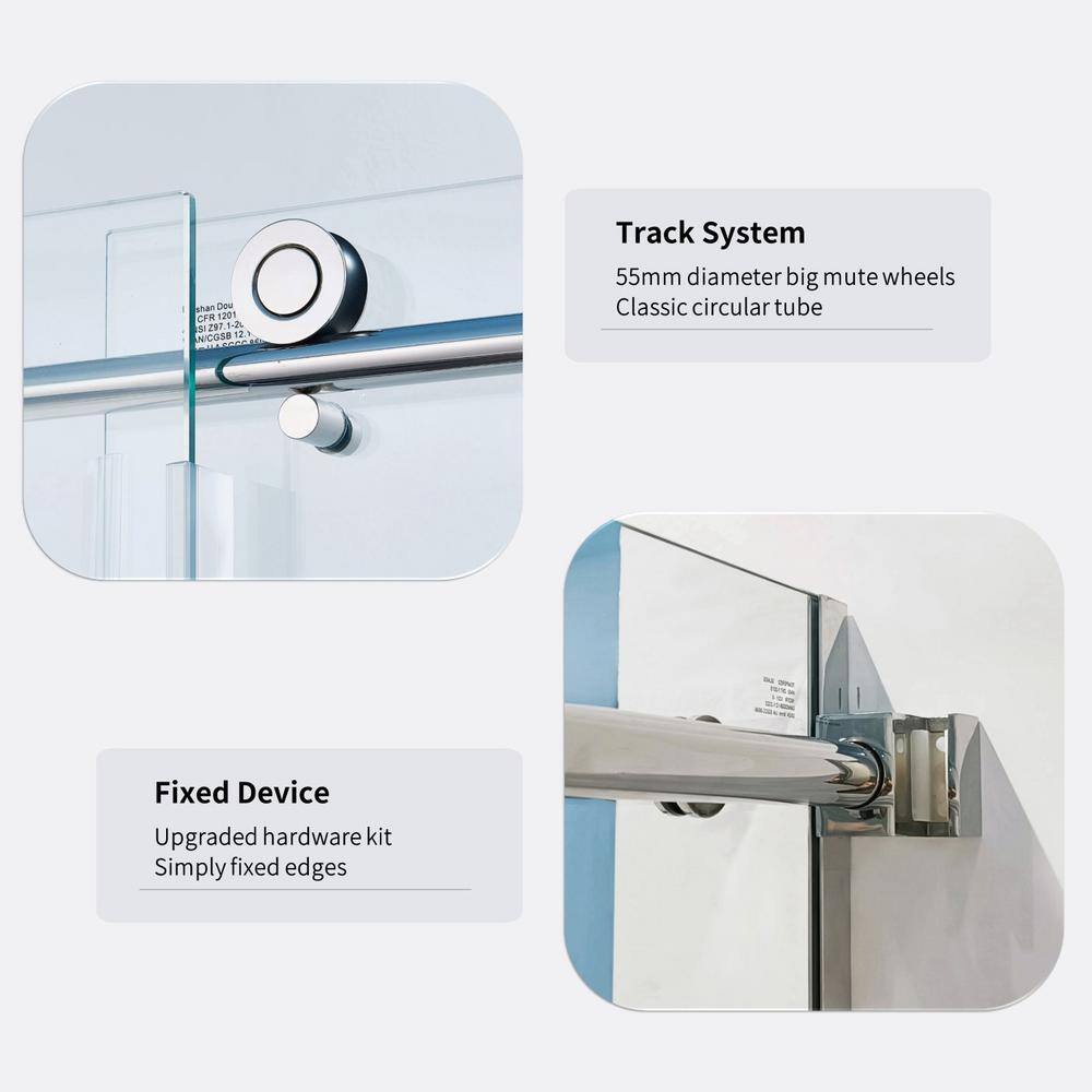 Enhance your bathroom with the Tenleaf Single Sliding Semi-Frameless Shower Door. This adjustable door offers versatile installation to fit your space between 56 to 60 inches wide. Made from high-quality tempered glass and featuring durable stainless steel, this door combines modern design with durability to upgrade any bath environment.
