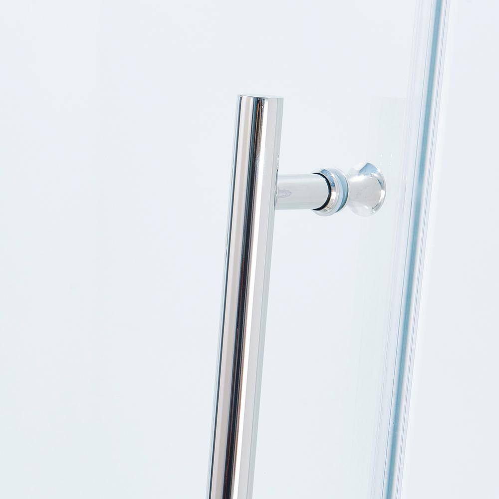 Transform your daily shower routine into a serene sanctuary with the Tenleaf Semi-Frameless Sliding Shower Door. Its exquisite chrome finish glistens, perfectly complementing the pristine clarity of its expansive tempered glass. Style it in a minimalist bathroom with soft, ambient lighting and elegant fixtures to create an impression of open, flowing luxury. This stunning shower door is more than a bathroom fixture; it's a centerpiece of modern sophistication and opulence.