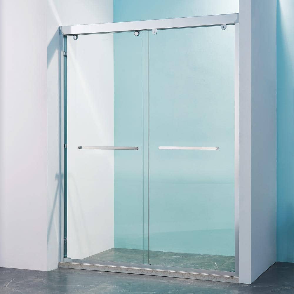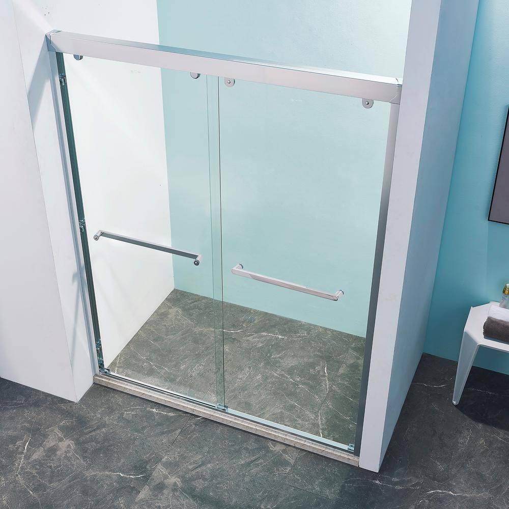 Elevate your bathroom with the Tenleaf 56 to 60 inch Double Sliding Aluminium Alloy Frame Shower Door. This sleek and durable shower door features a chrome finish and clear tempered glass, designed for easy access and modern elegance. With its adjustable width and secure sliding mechanism, it offers a perfect fit and unparalleled stability in any space.