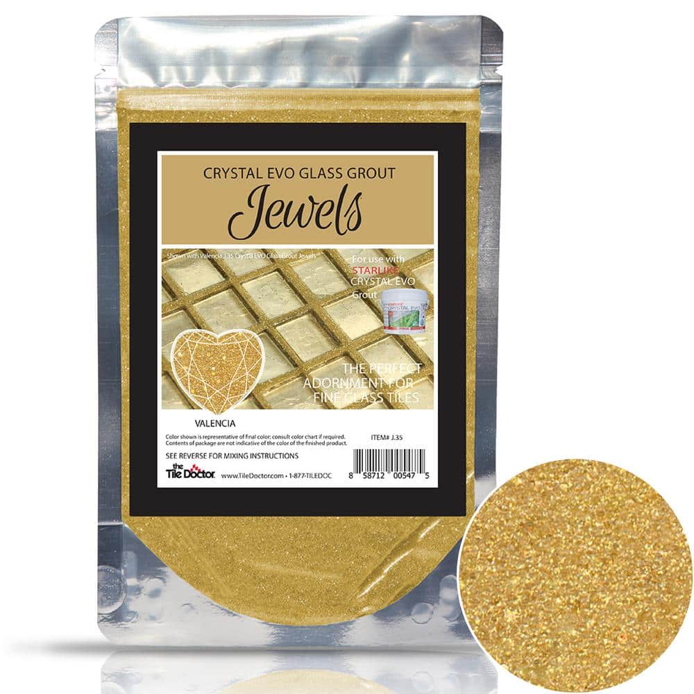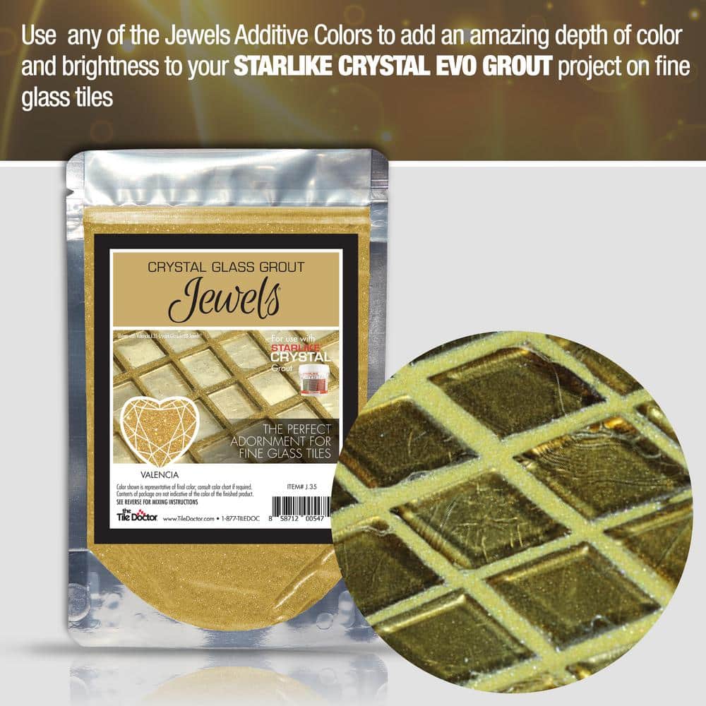 Elevate your tile installations with The Tile Doctor's Crystal Glass Grout Jewels Valencia. Designed for use with the Starlike EVO 700 Crystal Glass Grout, this additive transforms ordinary grout into an eye-catching feature, offering over 20 vibrant color options and enhancing your tiles with jewel-like brilliance.