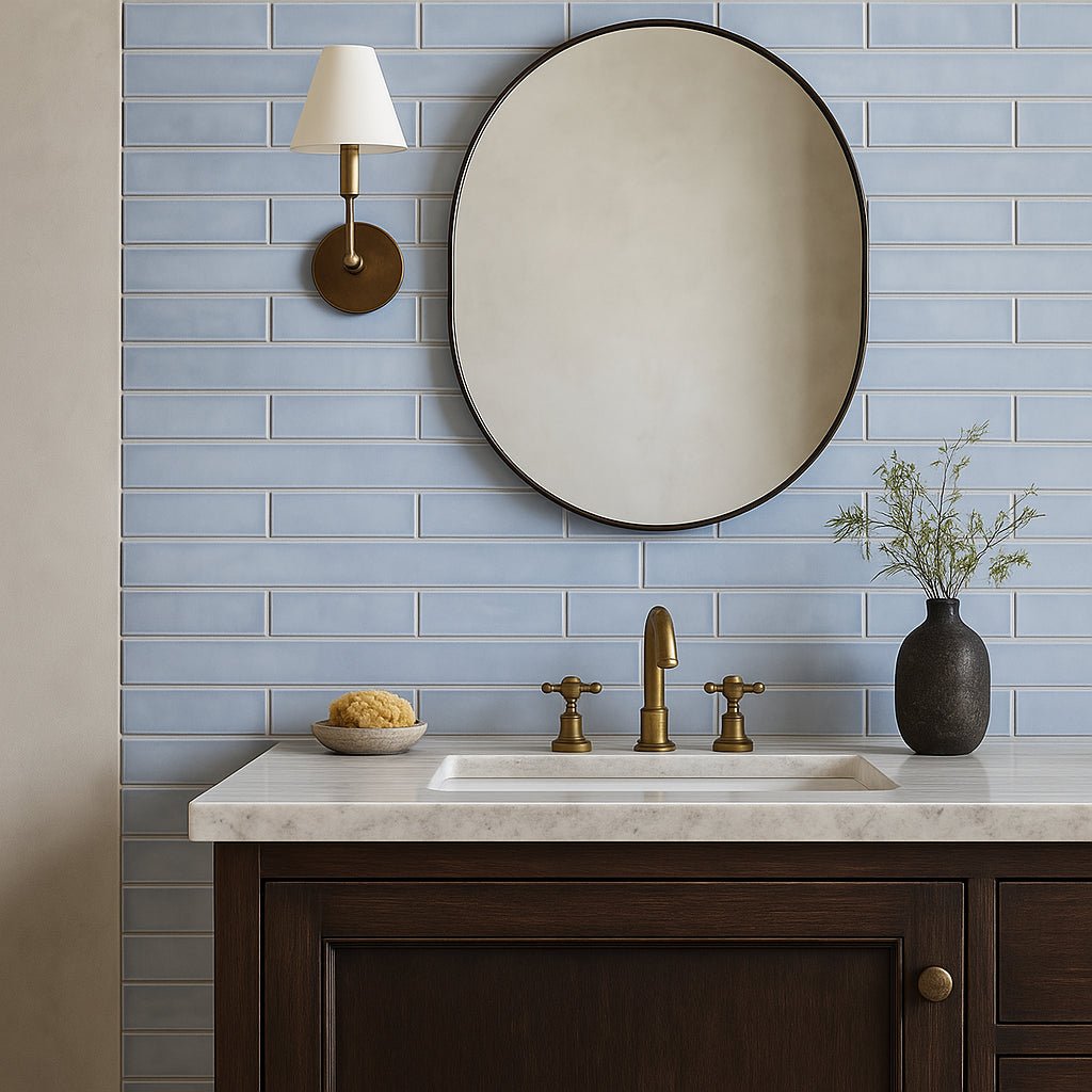 Elegant Design: Features a delicate blue-gray shade and elongated brick format.