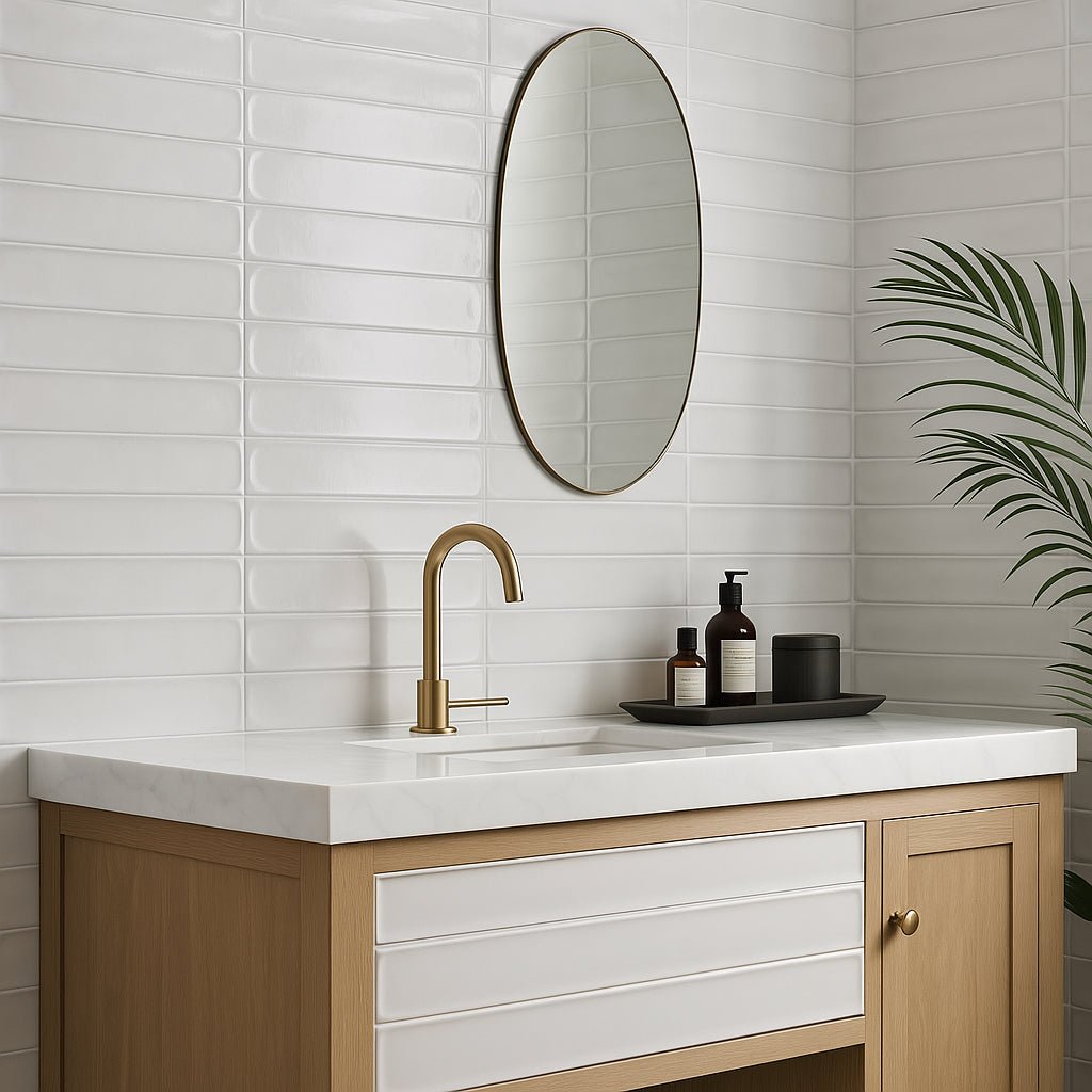 The ArtBlock Bianco White tile by Stacy Garcia redefines the classic subway tile with its elongated brick format and glossy finish. Its cool white shade brings a sense of refined luxury, making it a versatile choice for any interior. Pair it with contrasting grout for a bold statement or keep it subtle with matching tones. This tile is a must-have for creating a sophisticated and modern ambiance.