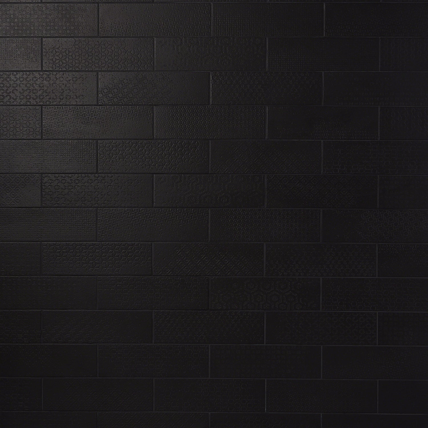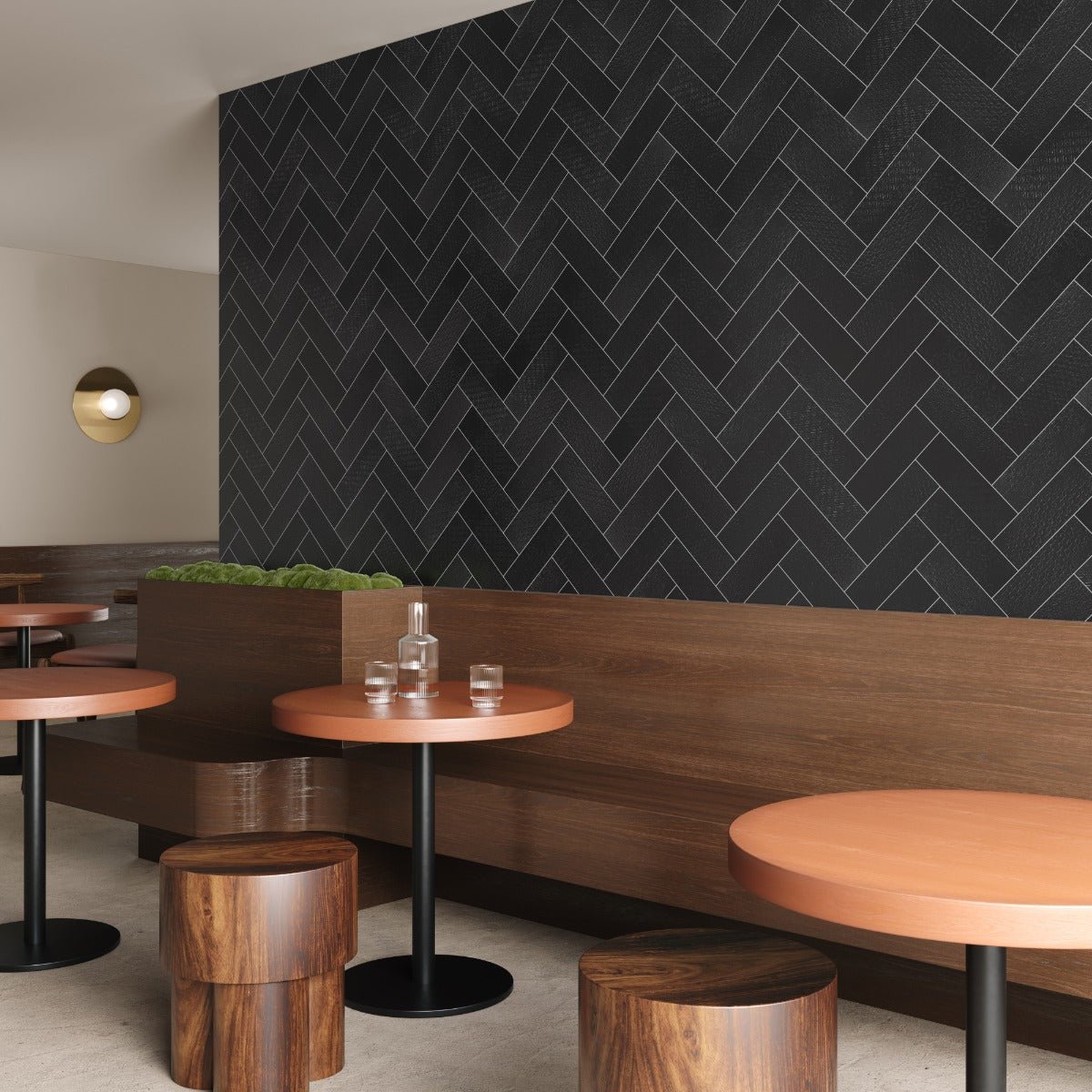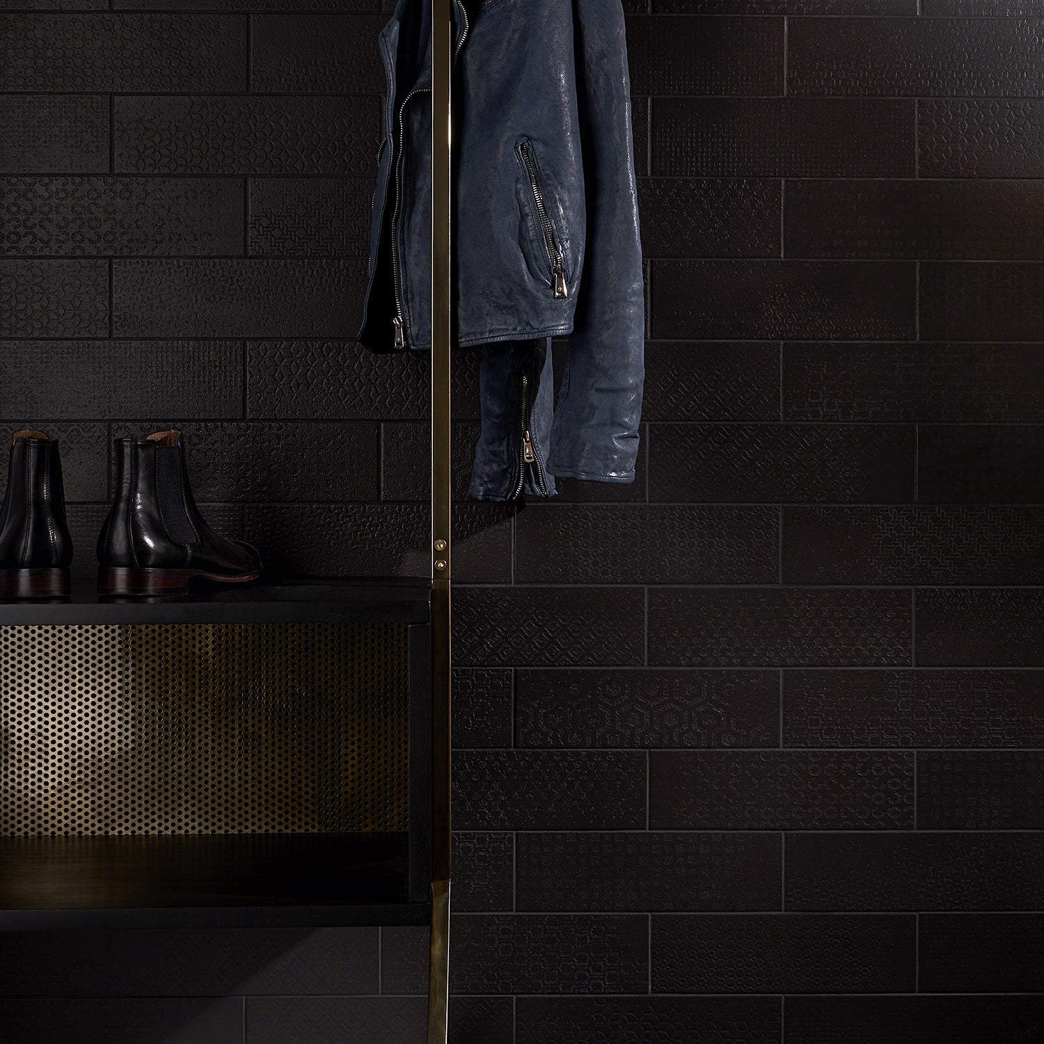 Transform your space with the Tessuto Carbone Black Matte Porcelain Subway Tile, perfect for creating a sleek and modern look.