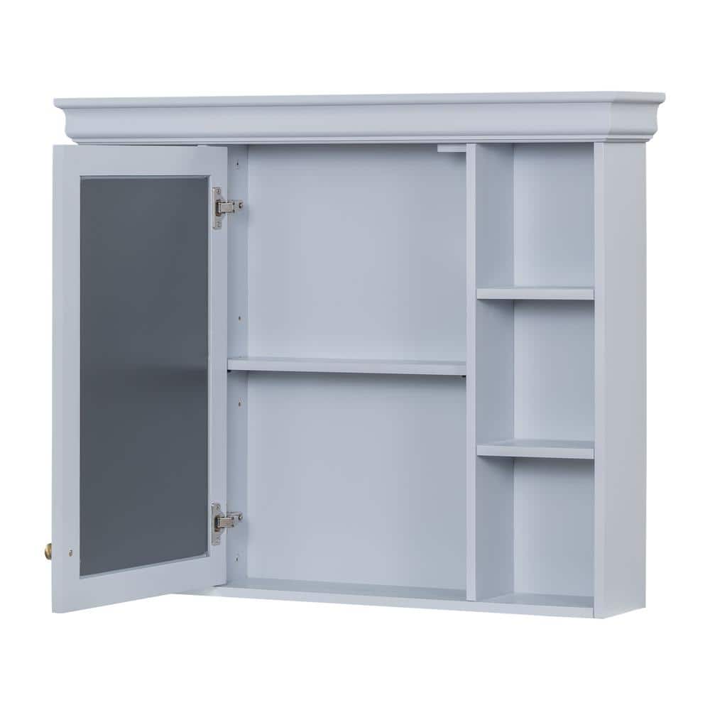 Elevate your bathroom with the Tileon 35.5 in. W x 28.74 in. H Rectangular Medicine Cabinet. This stylish cabinet boasts six open shelves and a mirrored door, offering both practical storage and a sophisticated touch to your space. Ideal for maximizing your bathroom's organization and aesthetics.