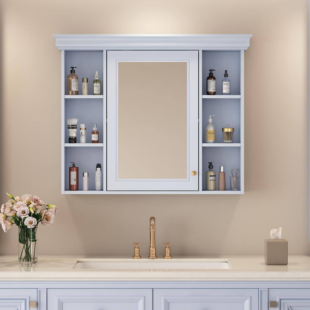 Tileon 35.50 in. W x 28.74 in. H Rectangular MDF Medicine Cabinet with Mirror, Storage Cabinet with 6 Open Shelves-Blue