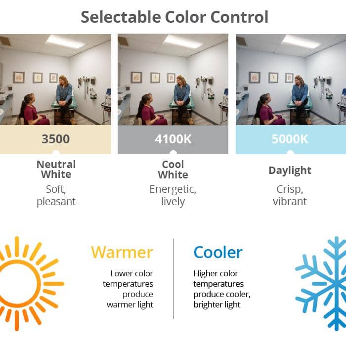 - Color Temperature: Selectable settings between 3500K, 4100K, and 5000K for tailored ambience