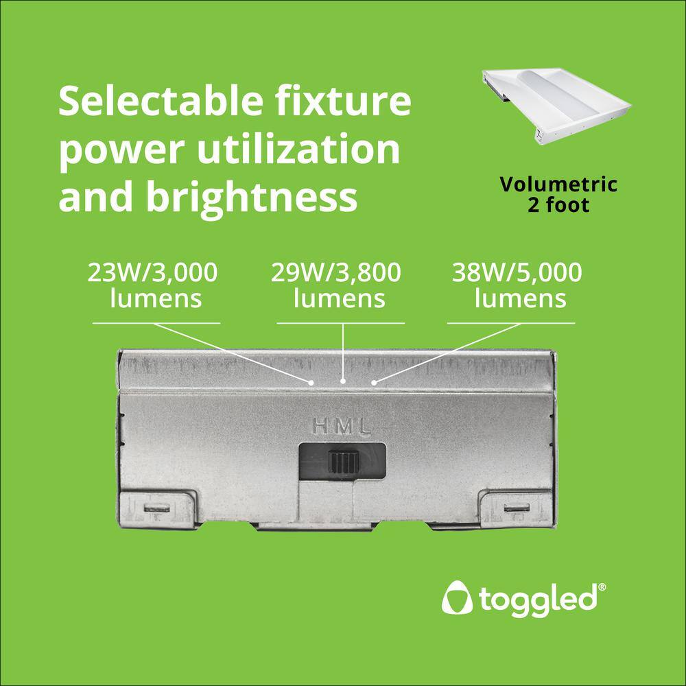 toggled 2 ft. x 2 ft., 5,000 Lumens, Integrated LED Troffer Light - CCT and Wattage Selectable (3500K/4100K/5000K)