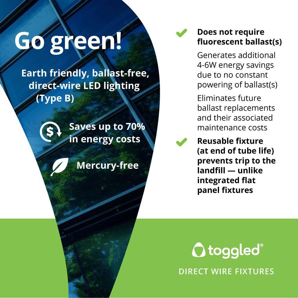 Direct-Wire Technology: Ballast-free design reduces energy costs by up to 70%.