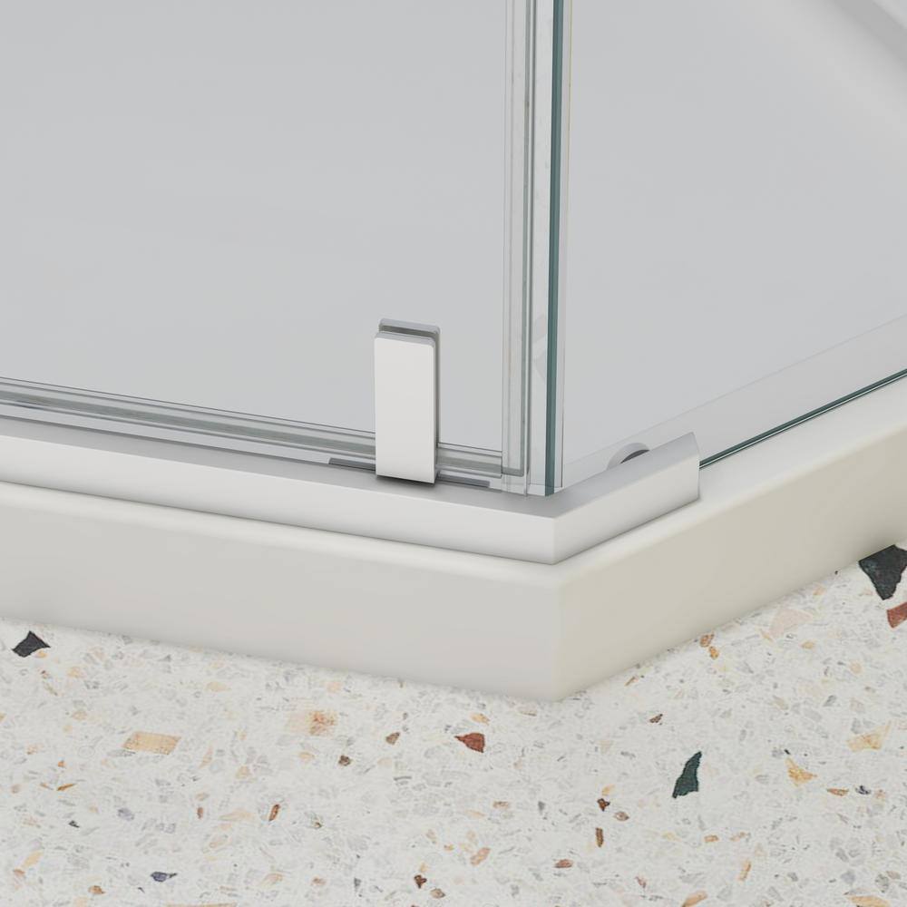 Elevate your bathroom with the TOOLKISS Neo-Angle Pivot Shower Enclosure, featuring a semi-frameless design and clear tempered glass. Designed for durability and elegance, this shower enclosure offers versatile installation options and enhances any corner space with its sleek matte white finish and stainless steel accents.