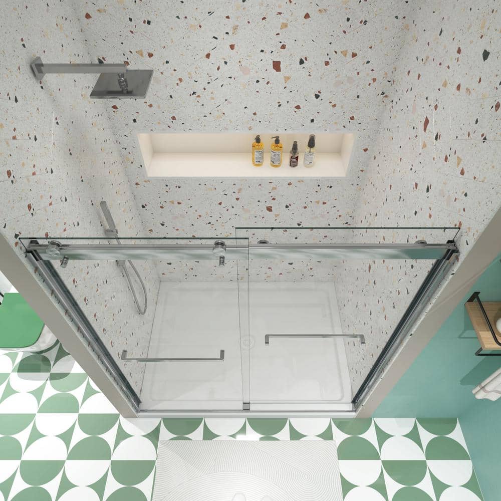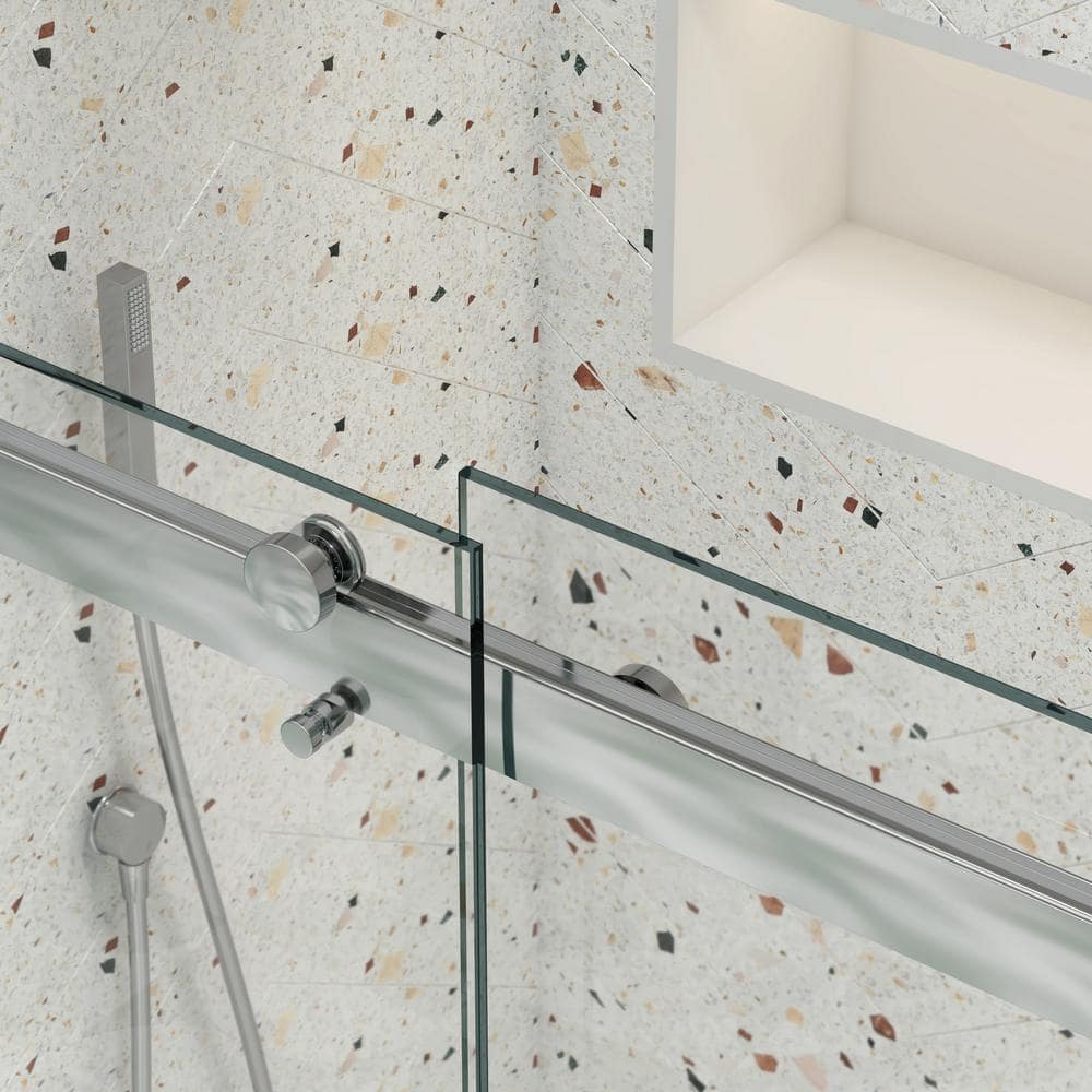 Upgrade your bathroom with the sleek and elegant TOOLKISS Chrome Sliding Shower Door. Featuring 5/16-inch tempered clear glass with advanced nano easy-clean treatment, this door ensures both safety and convenience. The chrome finish and stainless steel hardware provide a contemporary look, while its smooth sliding system offers exceptional functionality.