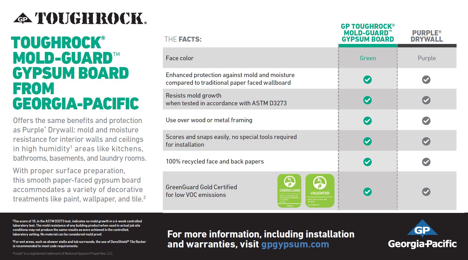 Choose ToughRock Mold-Guard Drywall for a seamless, mold-resistant solution in your next high-humidity project.