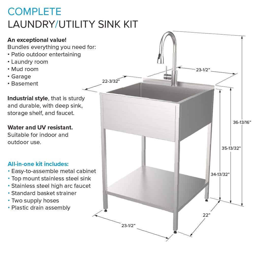 Compact Versatility: Ideal for small spaces, this sink fits perfectly in laundry rooms, workshops, or outdoor kitchens.
