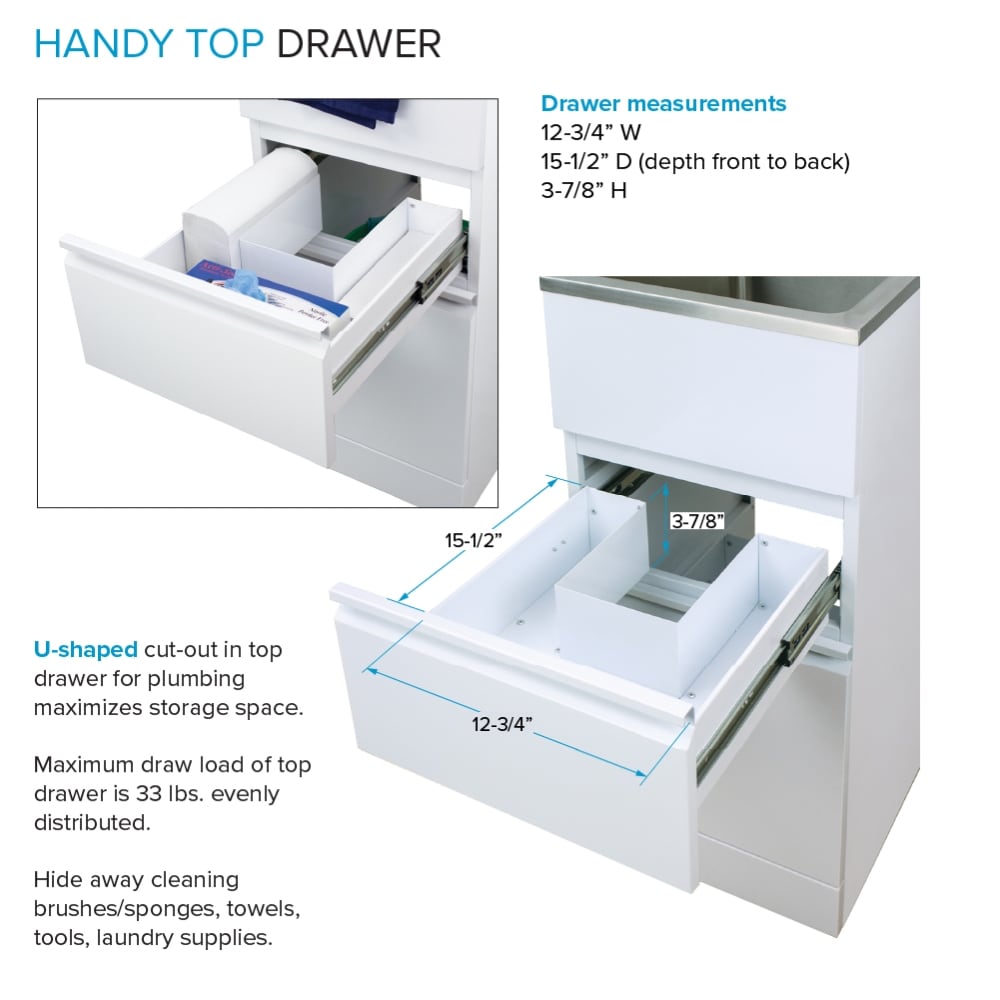 This Transolid Laundry Sink stands out as a remarkable fusion of design and utility, allowing any mundane space to embrace elegance. The sleek gloss white finish is not only striking but timeless, offering versatility for diverse style preferences. Its robust stainless steel frame, enriched with spacious drawers, harmonizes functionality with aesthetic appeal effortlessly. Incorporate this piece into your utility room or outdoor setup as a testament to chic practicality, fundamental to luxurious living with an edge.