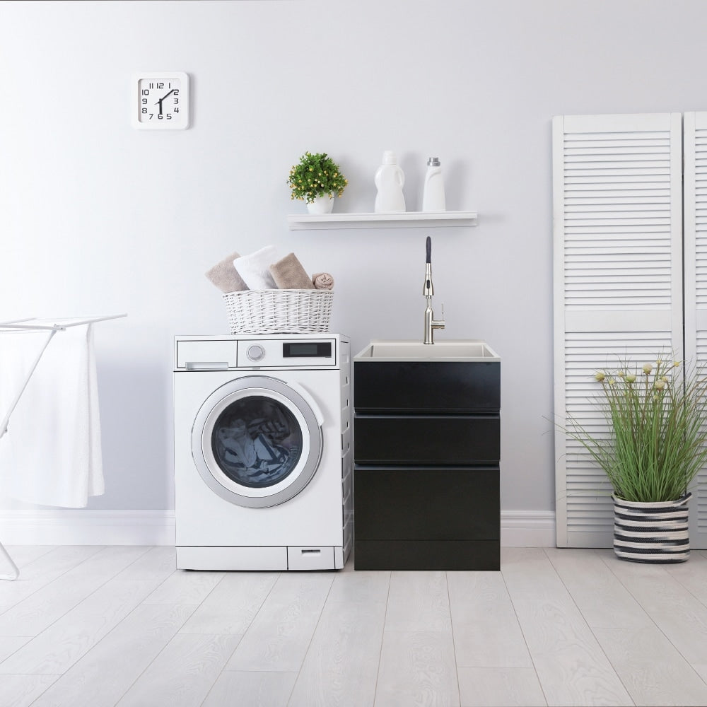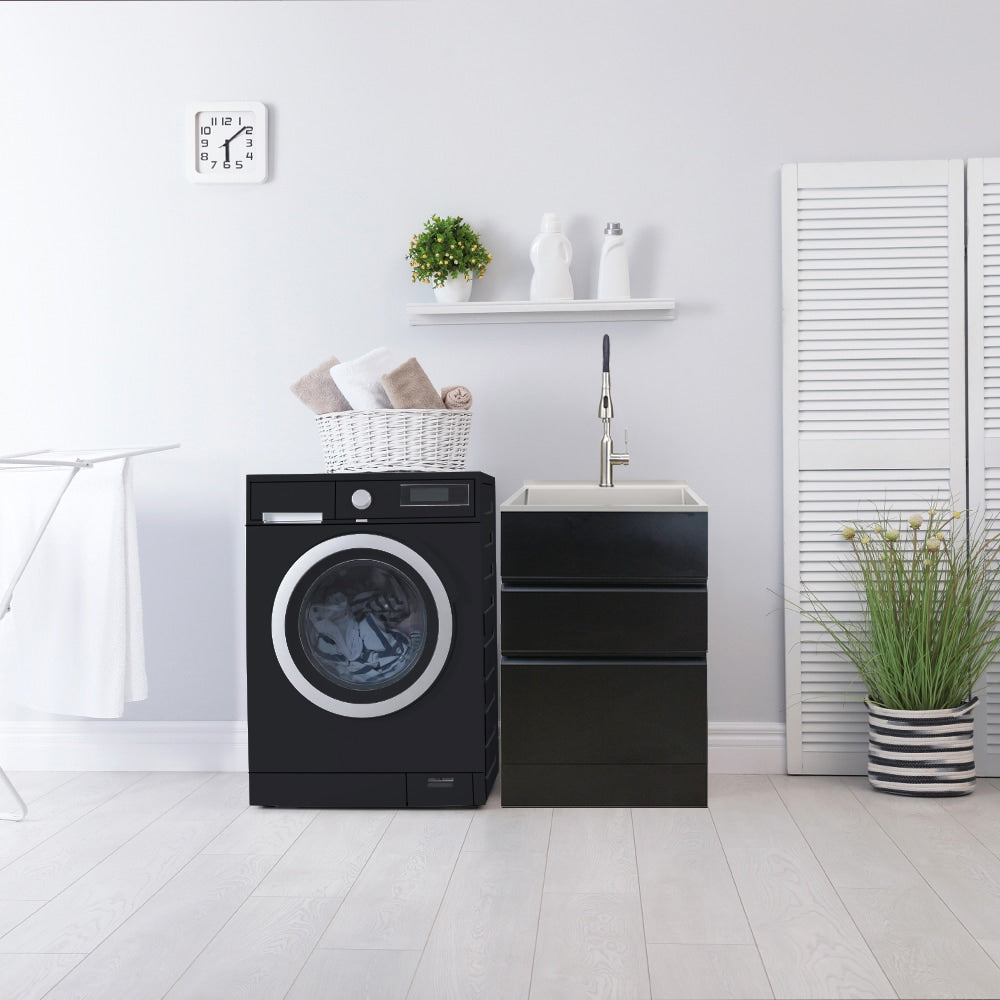 Matte Black Freestanding Laundry Sink with Cabinet and Faucet