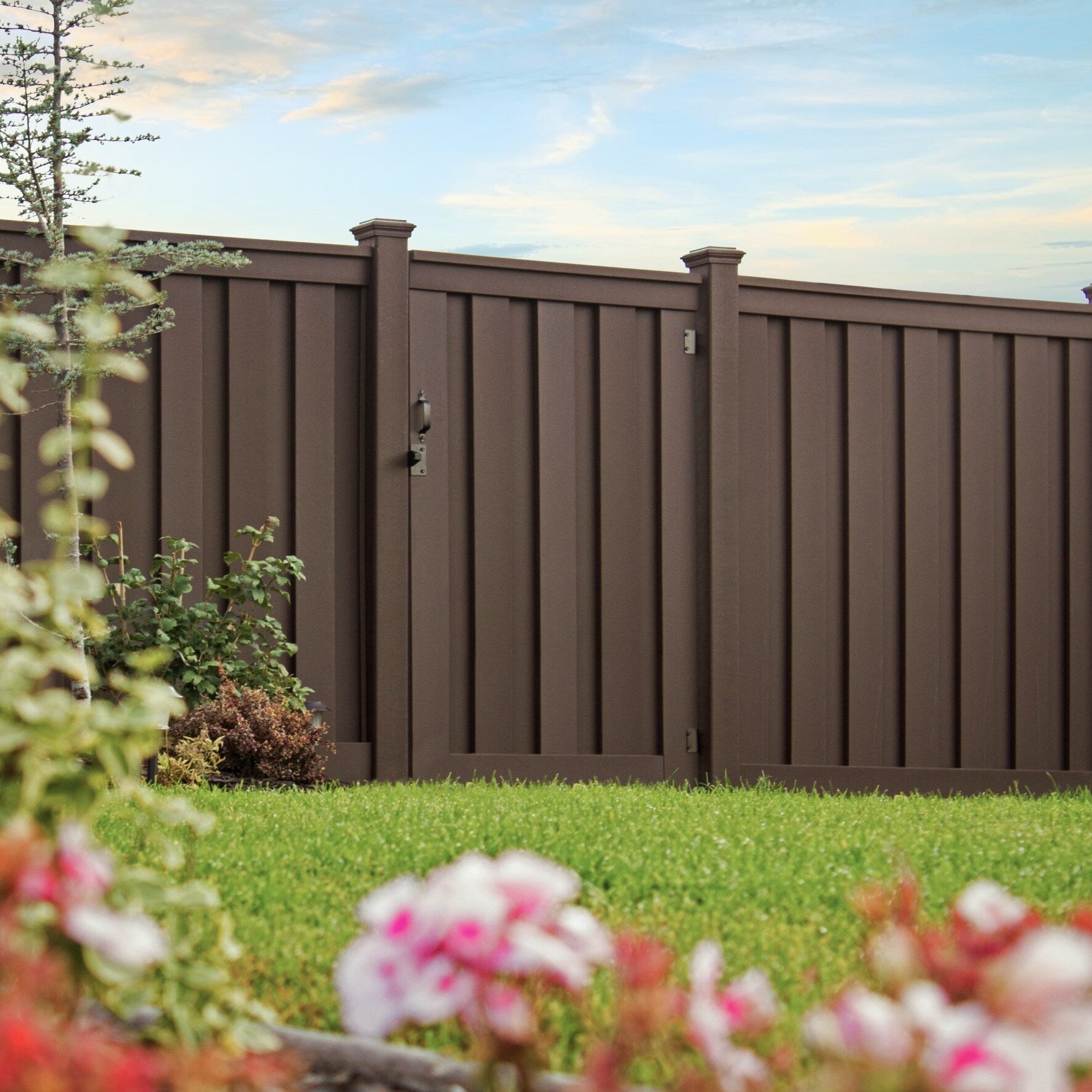 Enhance your outdoor privacy with the Trex Fencing Seclusions Composite Gate, designed in a rich Woodland Brown finish. Built to blend seamlessly into your fence line, this gate combines elegance with durability, thanks to its uniform appearance on both sides and sturdy composite construction.
