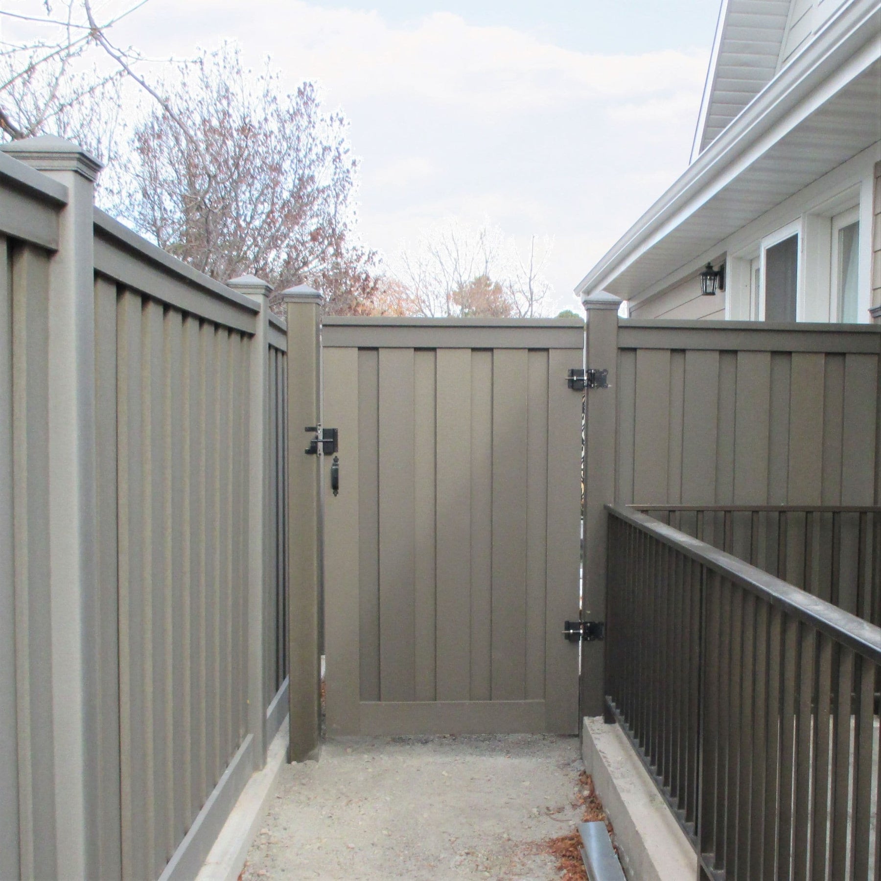 Secure your home's privacy and style today with the Trex Seclusions Composite Fence Gate in Winchester Grey.