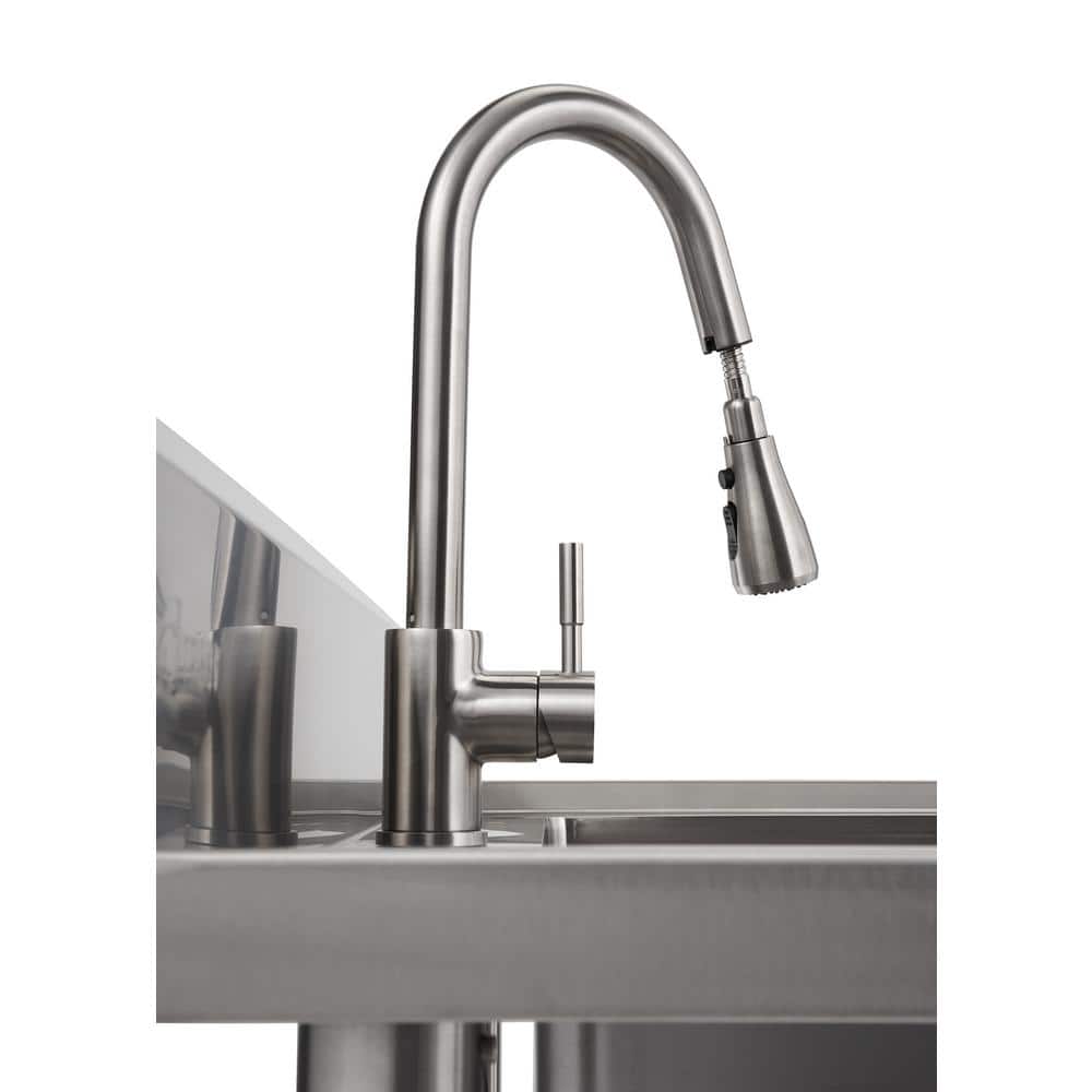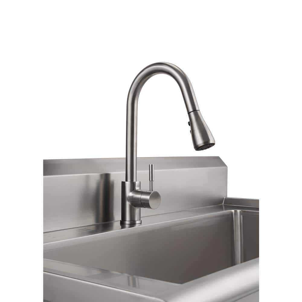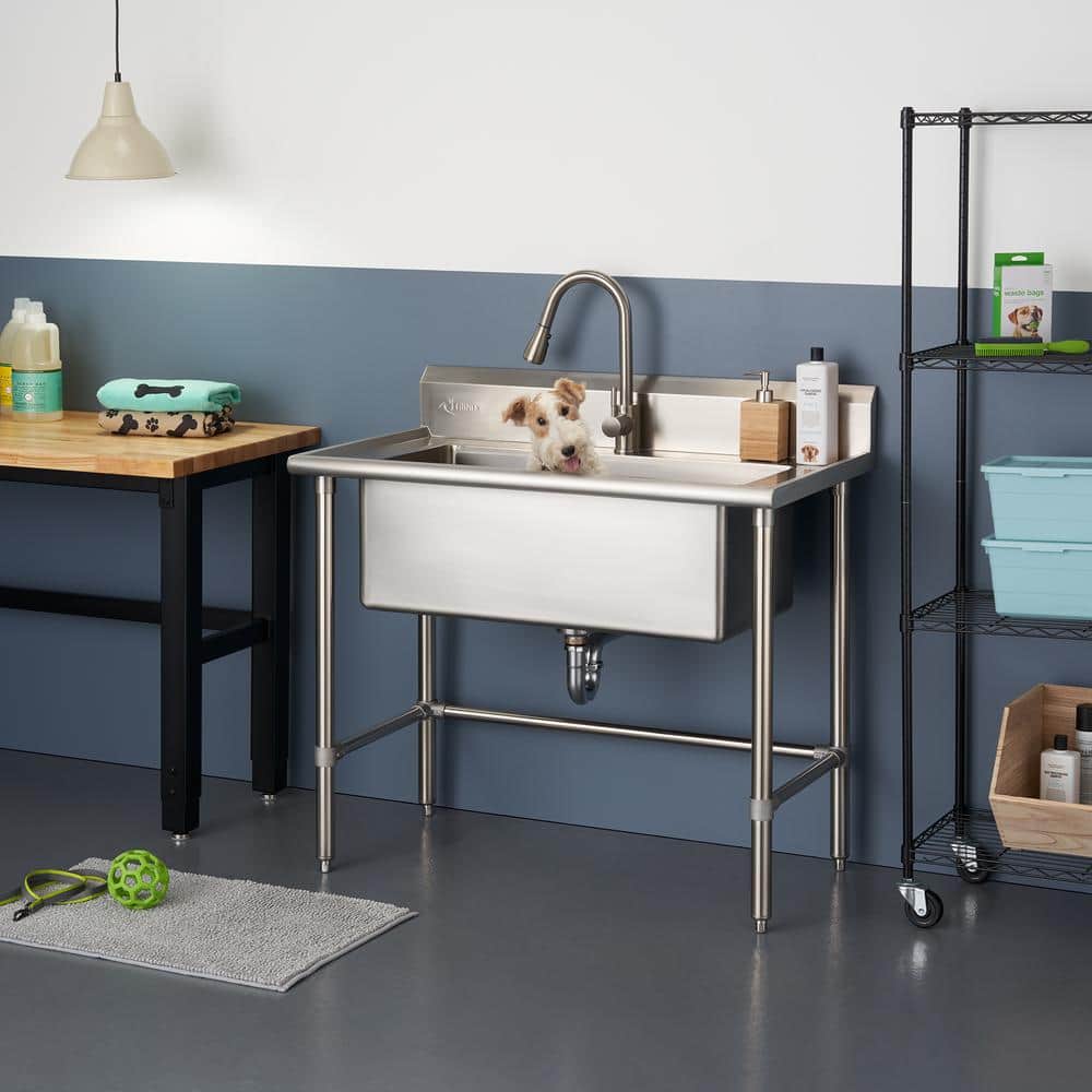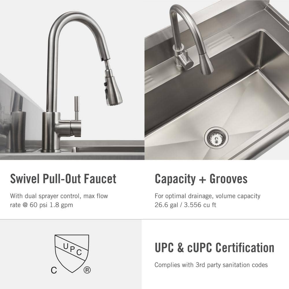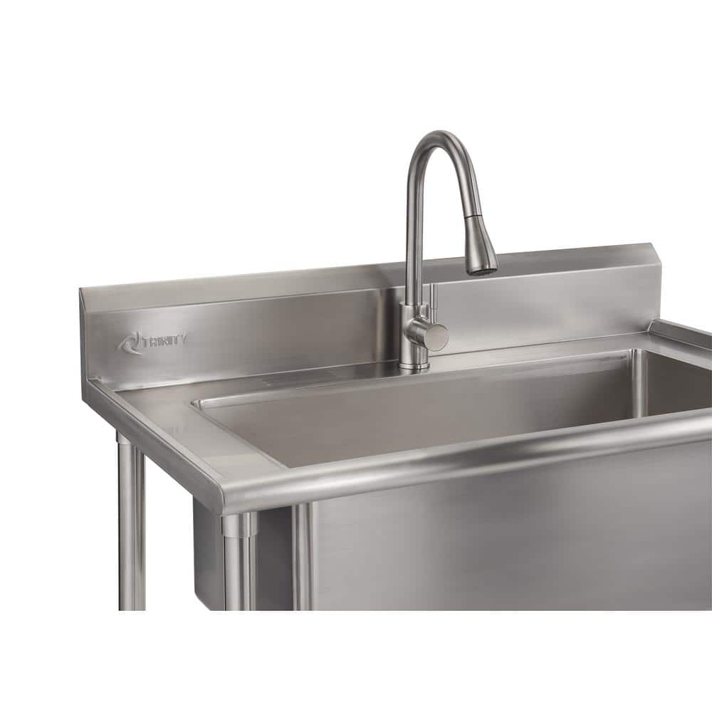 The TRINITY Stainless Steel Utility Sink is designed for those larger, messier tasks with its oversized basin and robust 16-gauge stainless steel construction. Equipped with a convenient pull-out sprayer faucet, this utility sink becomes an indispensable tool for any workspace or laundry room. Its eco-friendly design and anti-tipping features ensure both safety and sustainability in your home improvement projects.