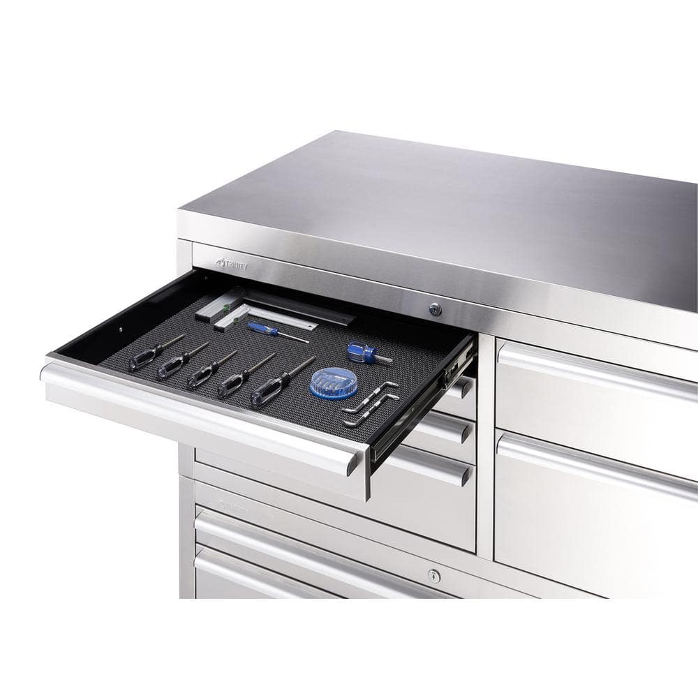Elevate your workshop organization today with the TRINITY Stainless Steel Rolling Tool Chest Combo and experience professional-grade efficiency firsthand!