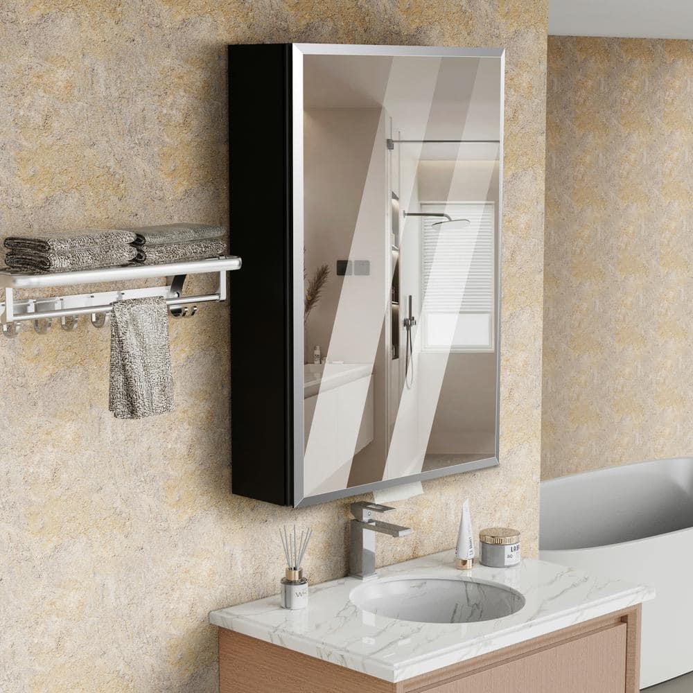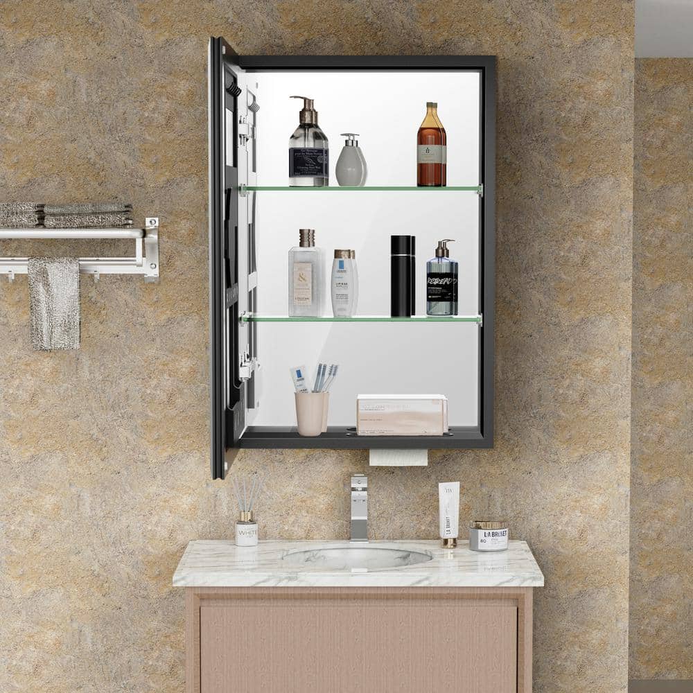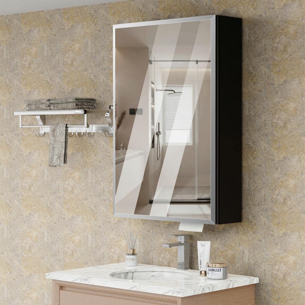 tunuo 18 in. W x 26.8 in. H Rectangular Aluminum Surface Mount Medicine Cabinet with Mirror, Tissue Drawer Hole, 3x Magnifier