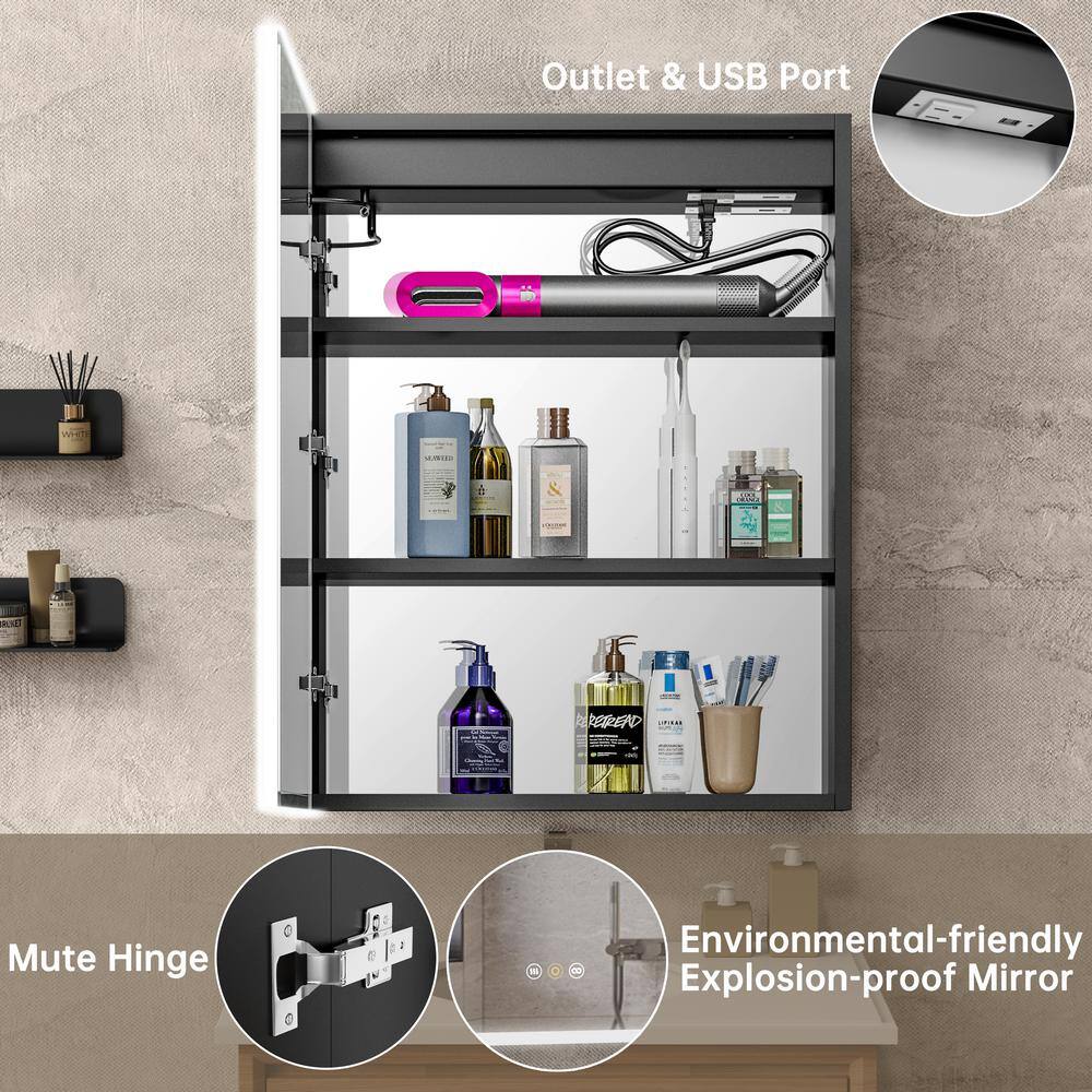 Anti-Fog LED Light Medicine Cabinet with USB & Outlets