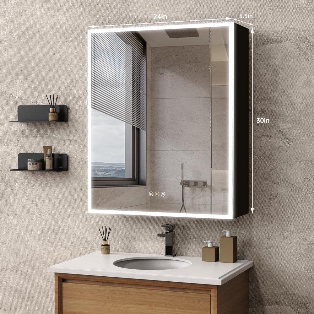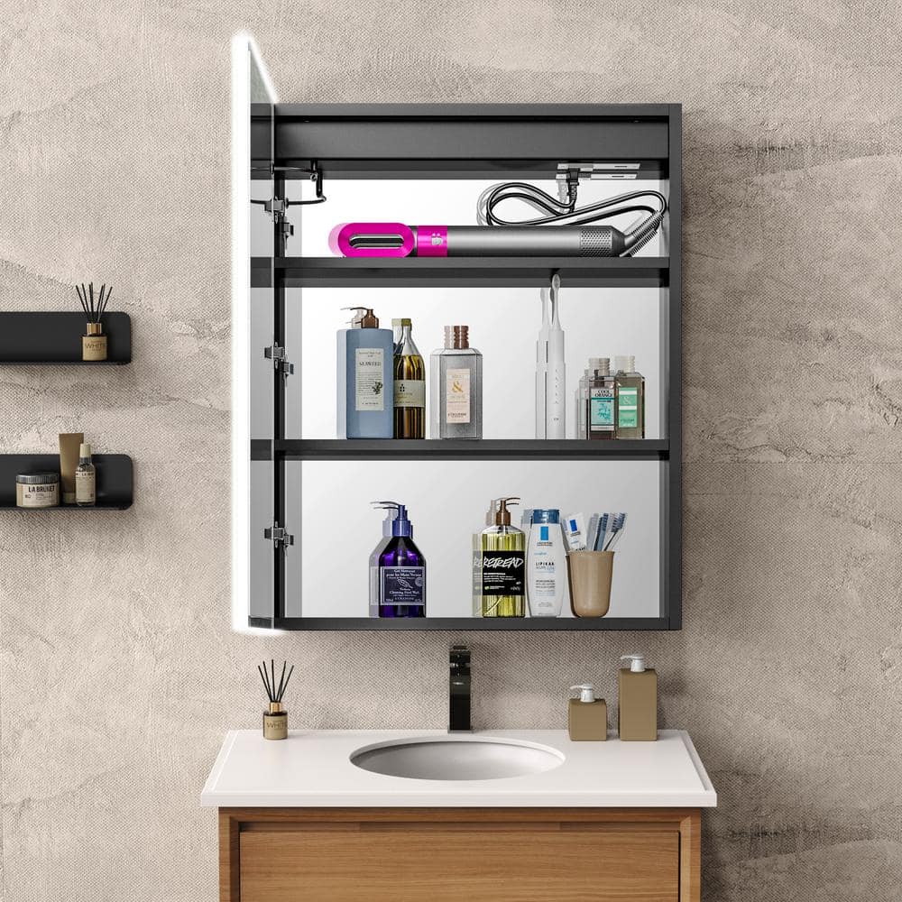 Transform your bathroom into a serene sanctuary with the Tunuo Anti-Fog LED Medicine Cabinet. Its striking matte black finish provides a dramatic contrast that catches the eye, while the adjustable LED lights offer a gentle, diffused glow, perfect for creating a spa-like atmosphere. Pair it with lush, verdant plants or textured towels for a naturally luxurious aesthetic. Embrace this cabinet as a beacon of style and practicality, a must-have for elevating your daily routines.
