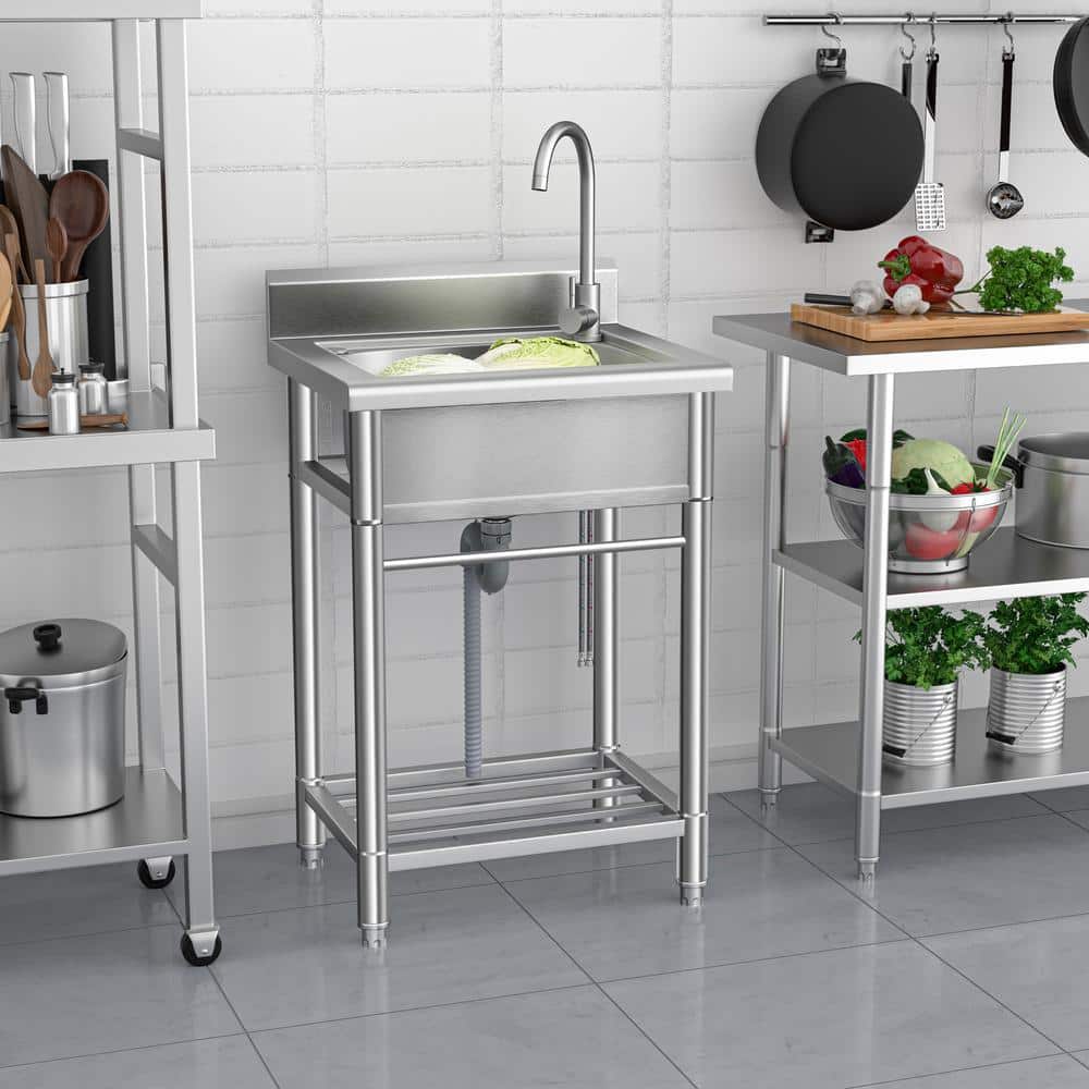 Elevate your workspace with the UKISHIRO Stainless Steel Freestanding Utility Sink. Built with food-grade 304 stainless steel, this freestanding sink is both durable and rust-proof. The 360° rotating gooseneck faucet ensures versatile use, making it an ideal choice for utility rooms and commercial setups.