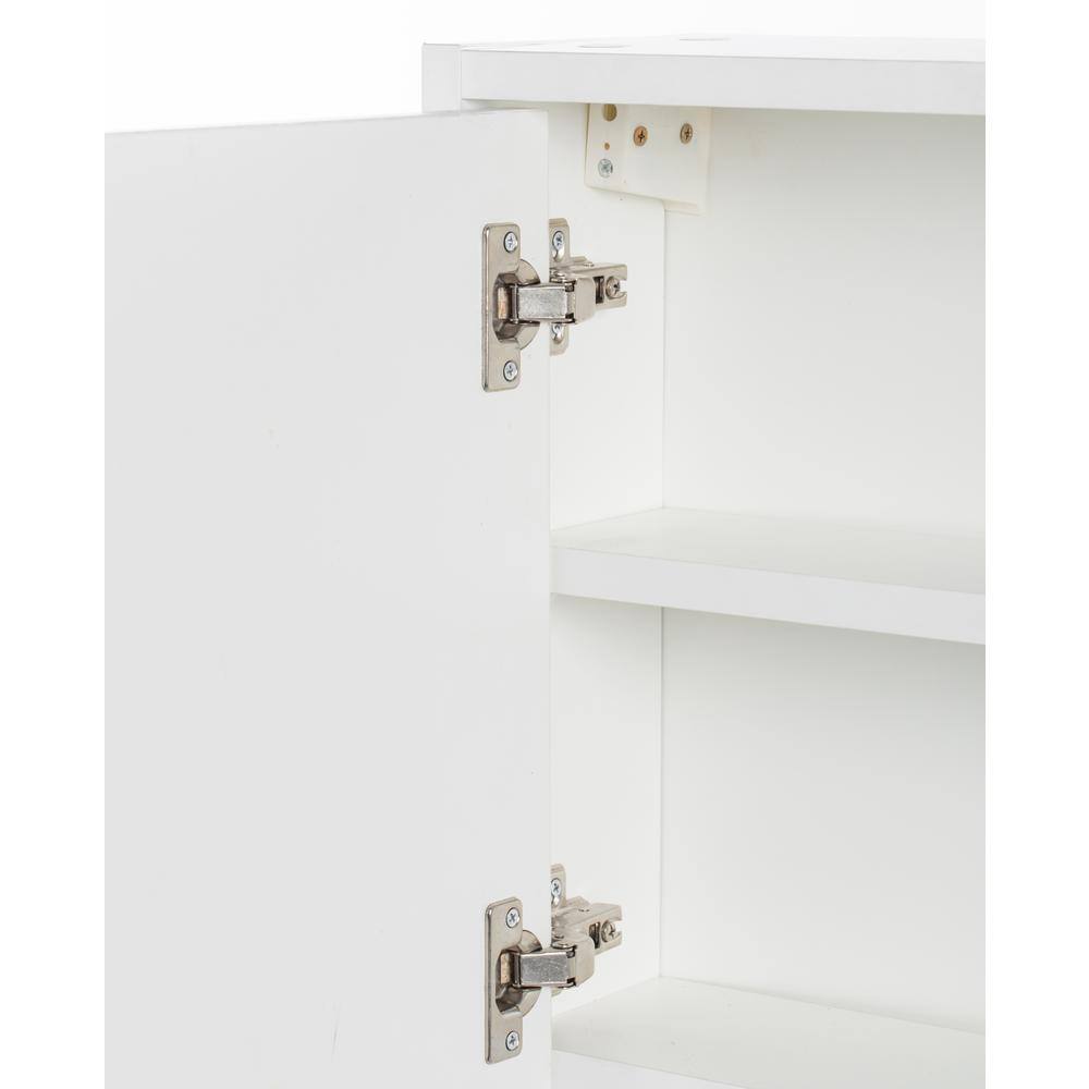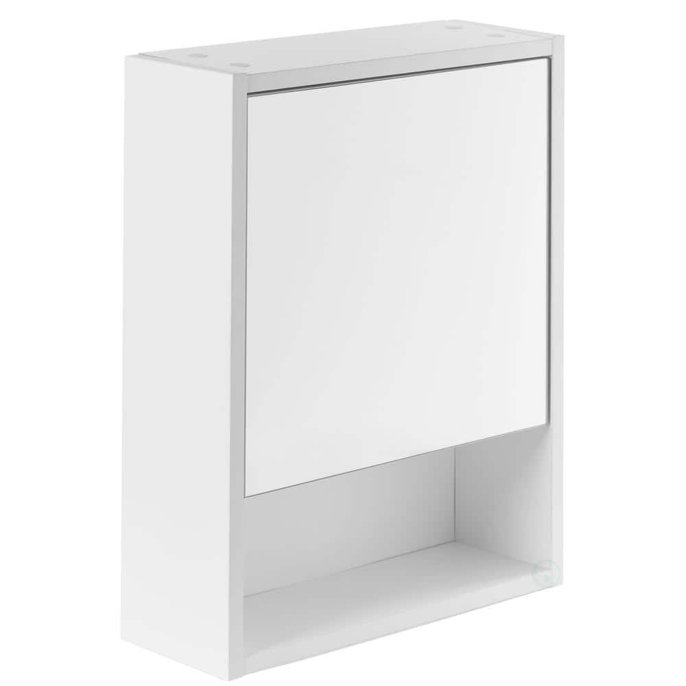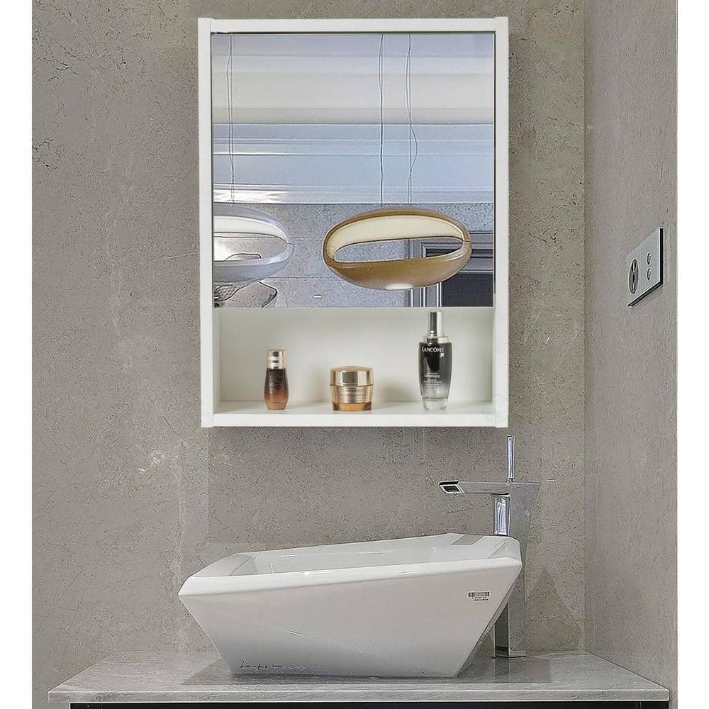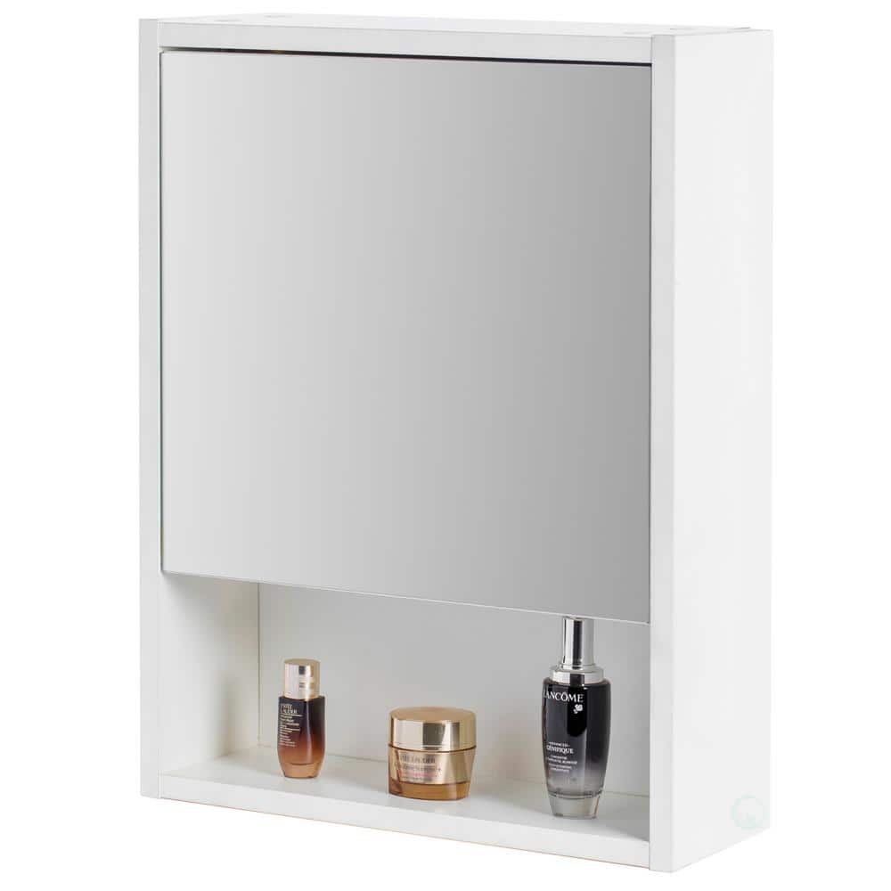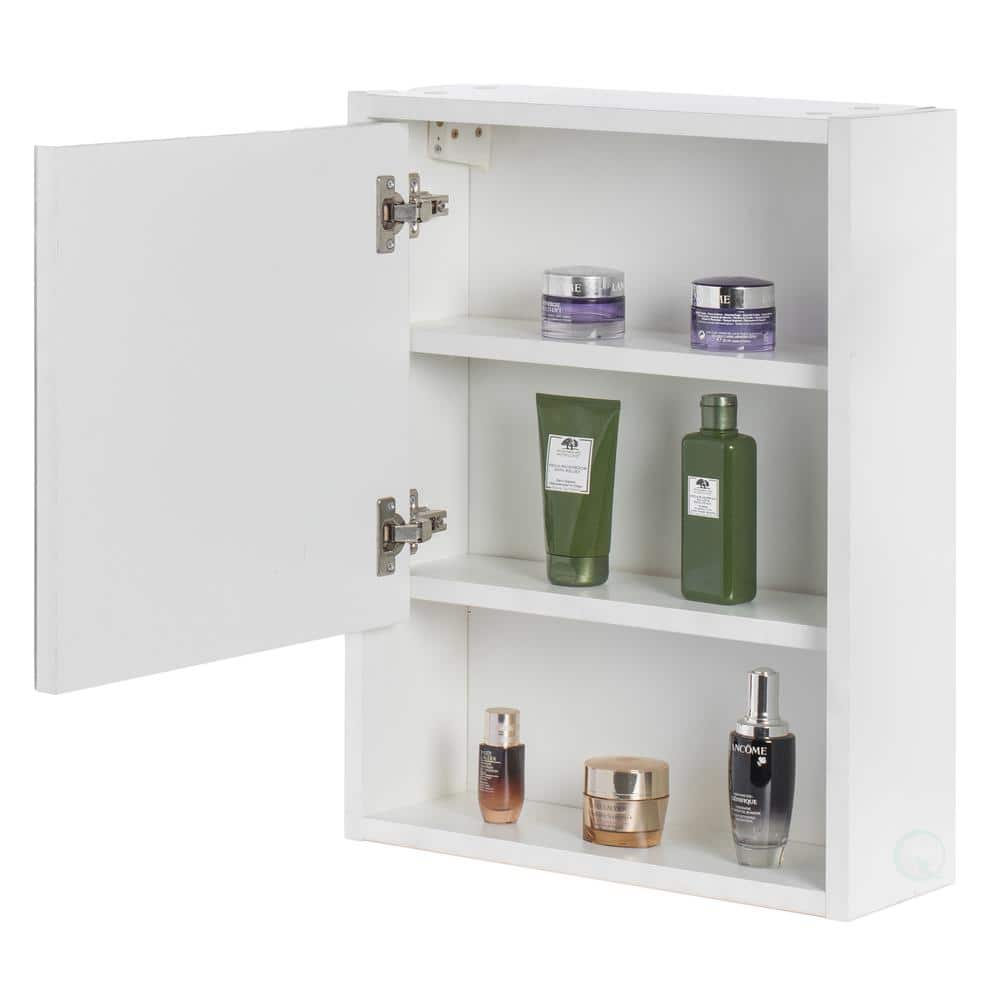 Maximize your bathroom storage with this modern medicine cabinet featuring a sleek mirrored door and three spacious shelves. Crafted from durable wood and finished in a clean white, it's designed for easy wall mounting and adds both functionality and style to your space.