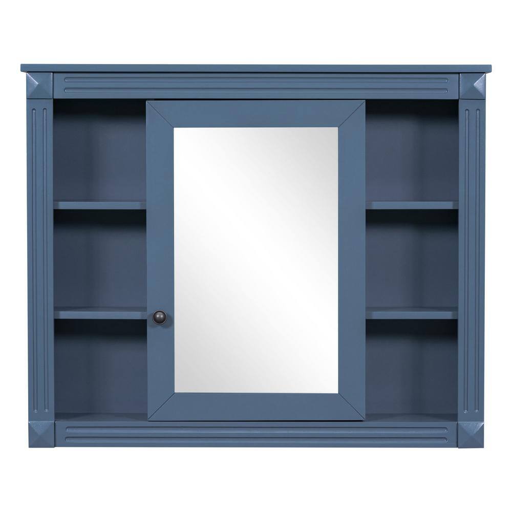 Unbranded 35 in. W x 28.7 in. H Rectangular Surface Mount Blue Bathroom Medicine Cabinet with Mirror with Open Shelves