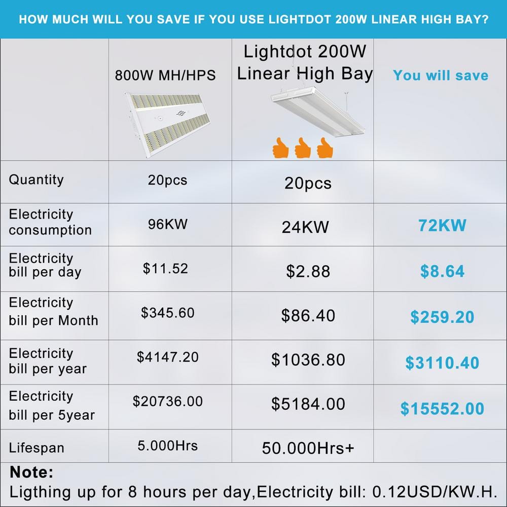 Energy Saving: Replaces 800W MH/HPS or 6 Lamp T8 high bays, reducing energy consumption by up to 80%.