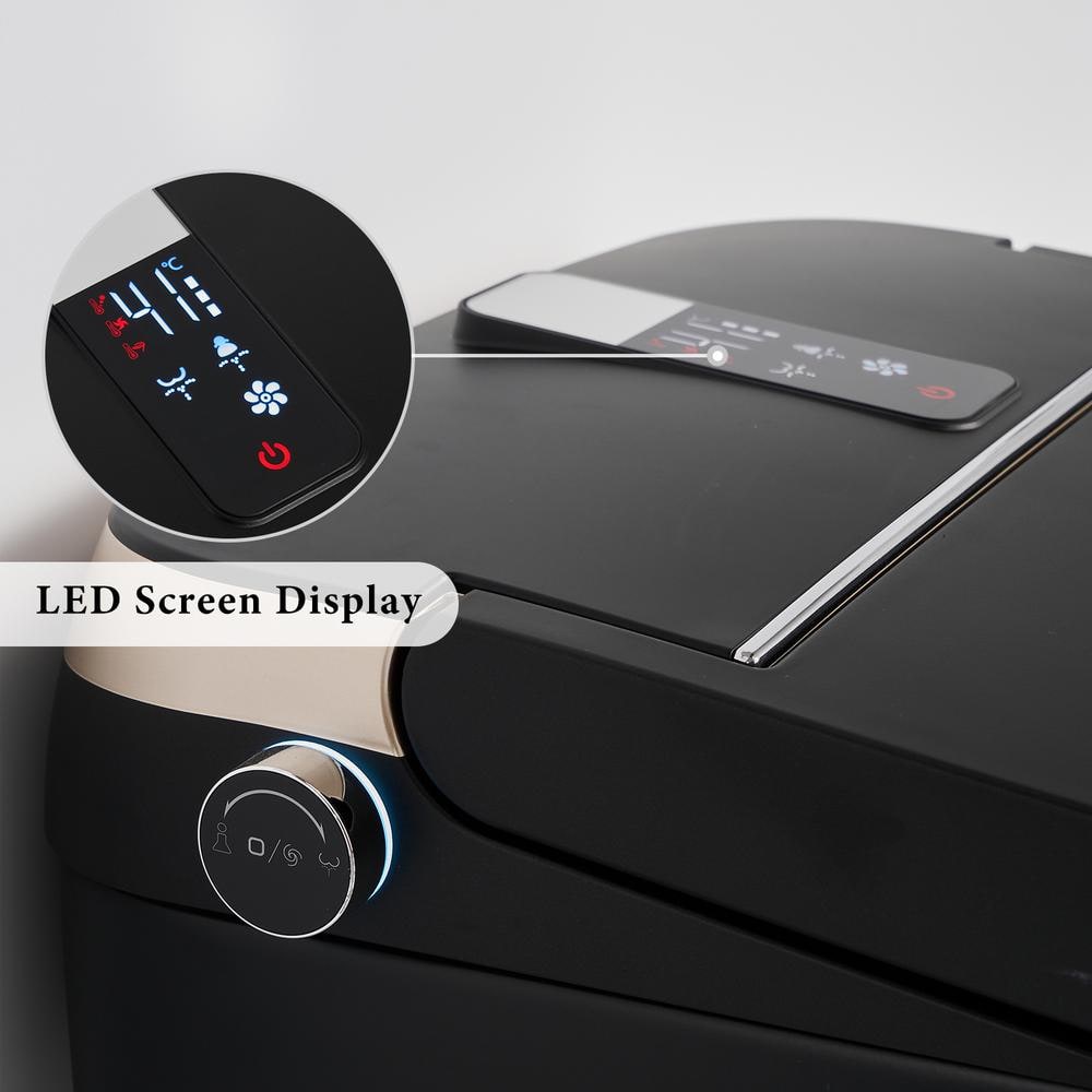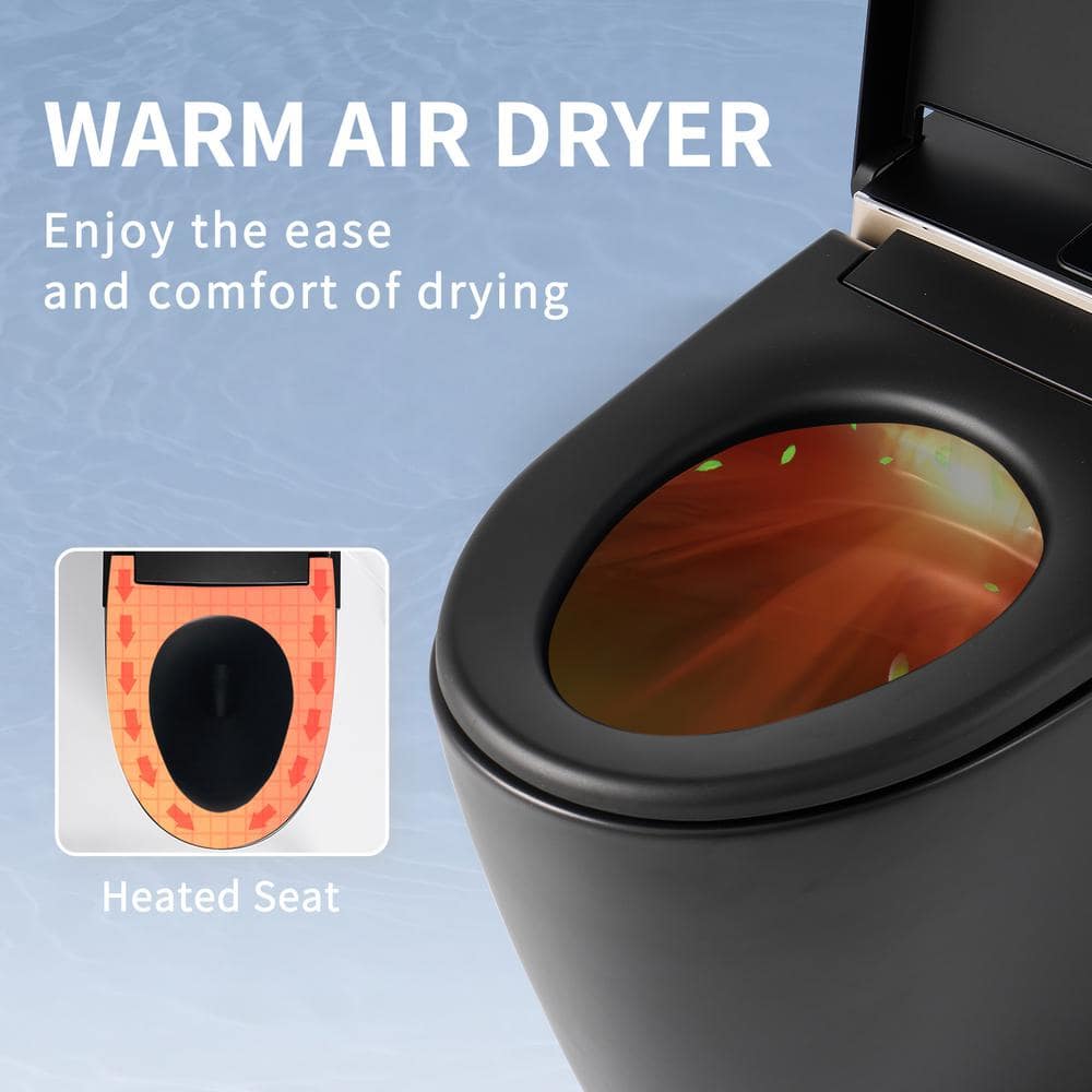Experience unparalleled comfort and advanced functionality with the UPIKER Smart Bidet Toilet in Matte Black. This luxurious unit boasts an automatic flushing system and heated seat for an elevated bathroom experience. The sleek ceramic design ensures stylish durability while smart features offer the ultimate in convenience and cleanliness.
