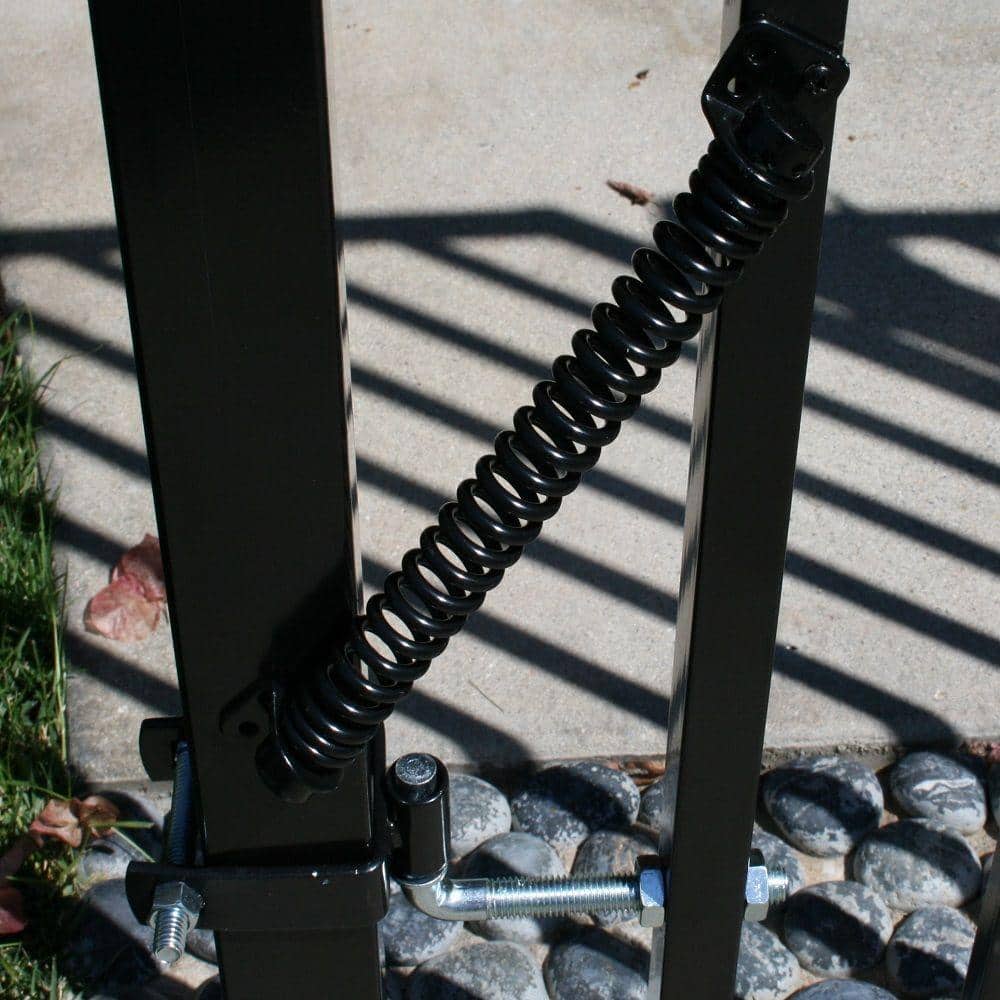 A: Yes, the black powder-coated, galvanized steel ensures resistance to rust and corrosion, making it perfect for outdoor gates.