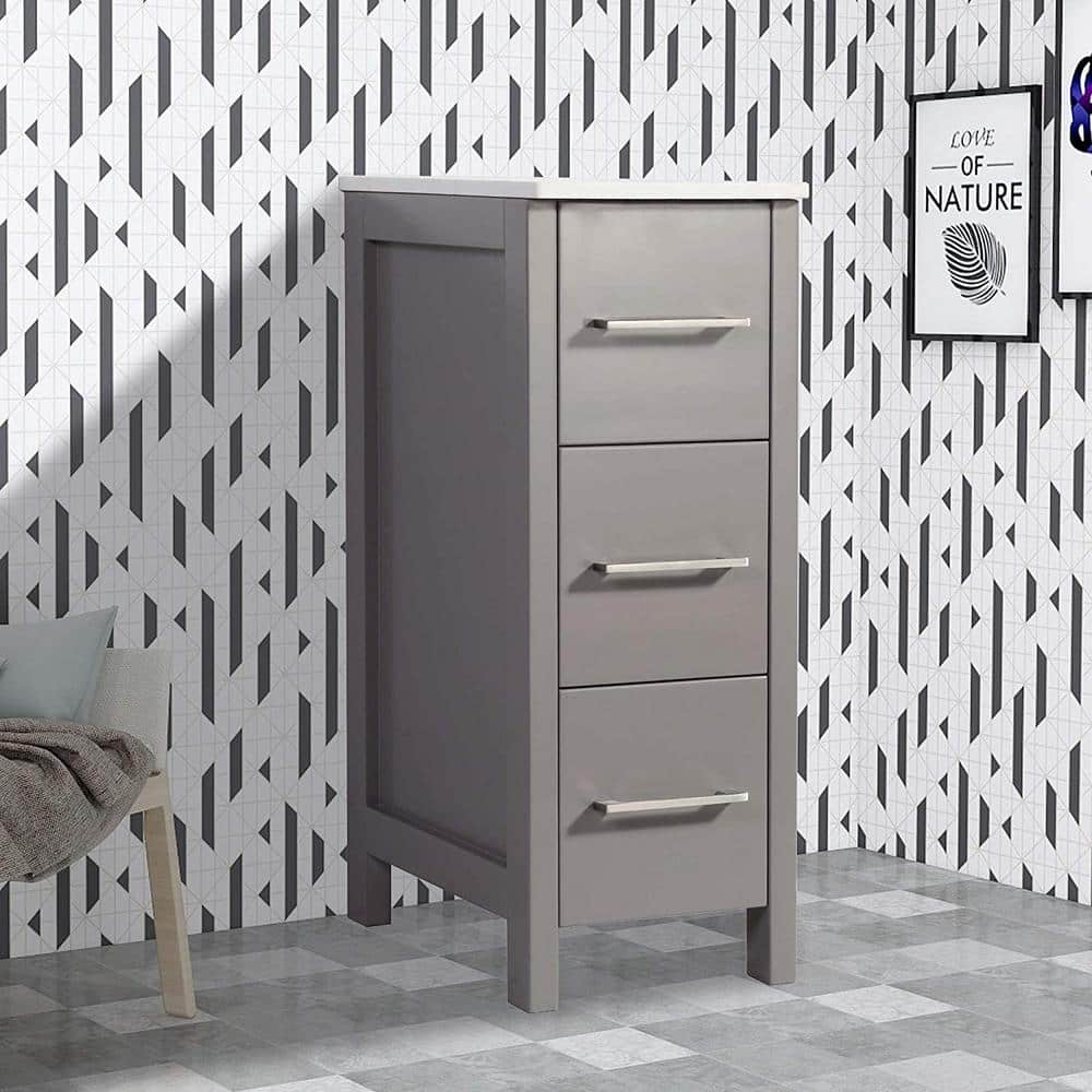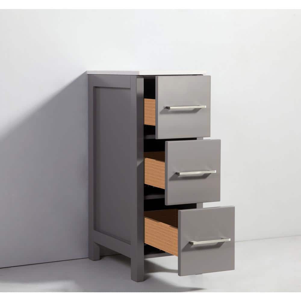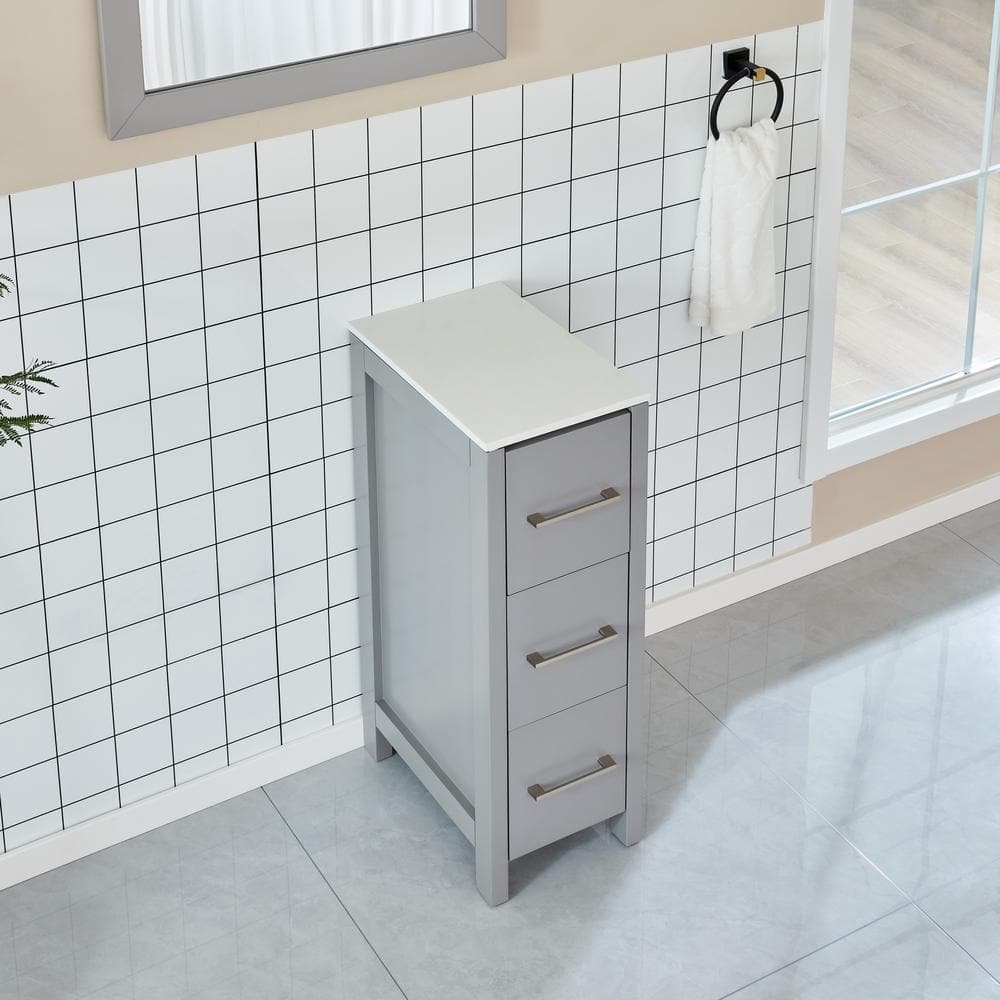 Vanity Art 12 in. W x 18.5 in. D x 30 in. H Bath Vanity Side Cabinet in Grey with Engineered Marble Top