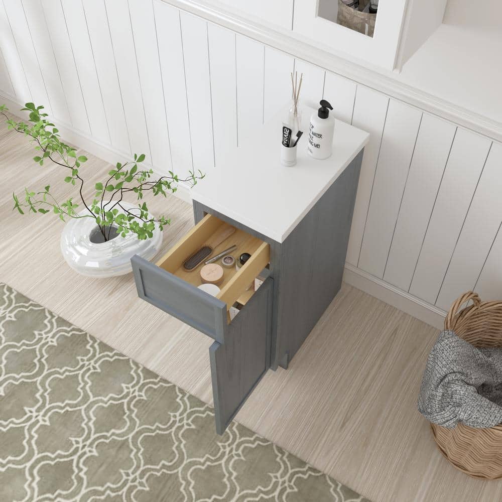 Elevate your bathroom's style with Vanity Art's Smoky Gray Bath Cabinet. This elegant, freestanding unit features a soft-closing drawer made from durable birch and plywood to ensure your storage needs are met with unmatched quality and sophistication.