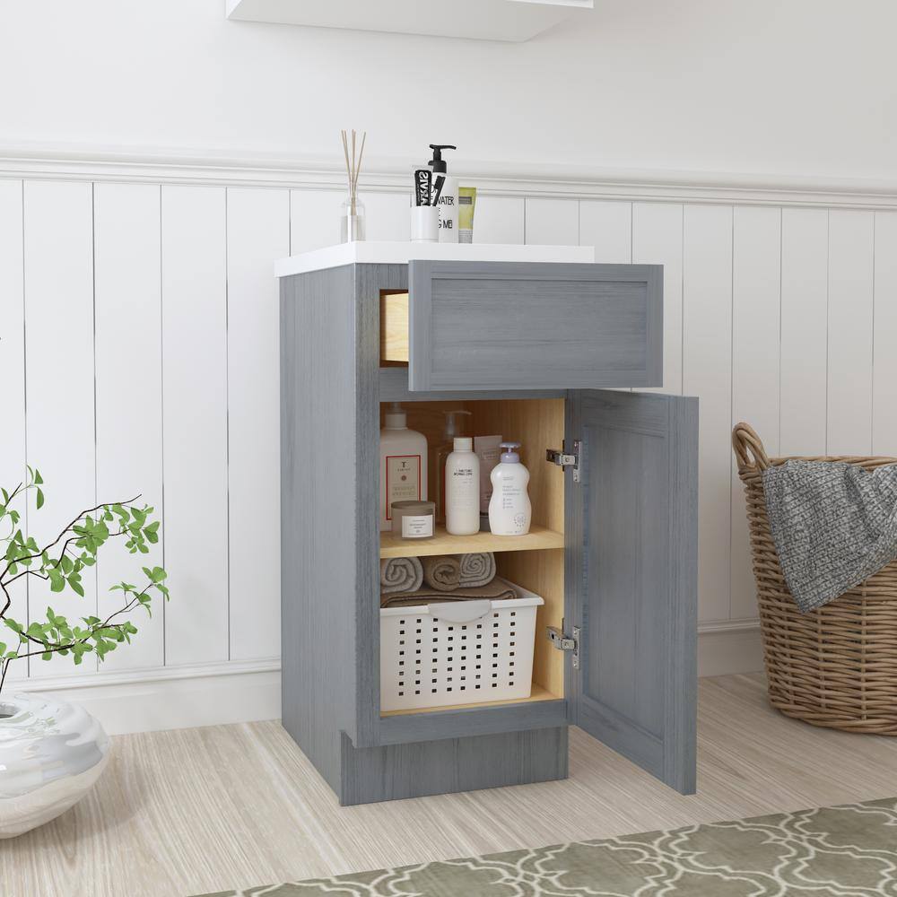 Vanity Art’s Smoky Gray Bath Vanity Cabinet breathes sophistication into every corner of your bathroom, enveloping the space in modern chic. Its shaker-style design offers a classic touch that remains eternally stylish, making it the focal point of your home spa retreat. Imagine pairing its cool hues with earthy textures for a harmonious balance that feels effortlessly curated. Truly, this piece stands as an emblem of refined living, blending functionality with high aesthetics.