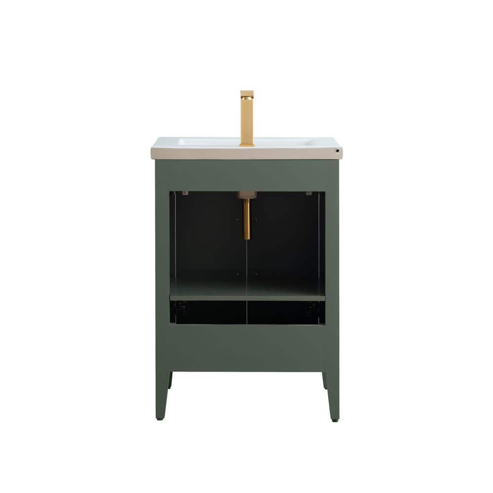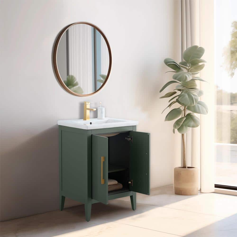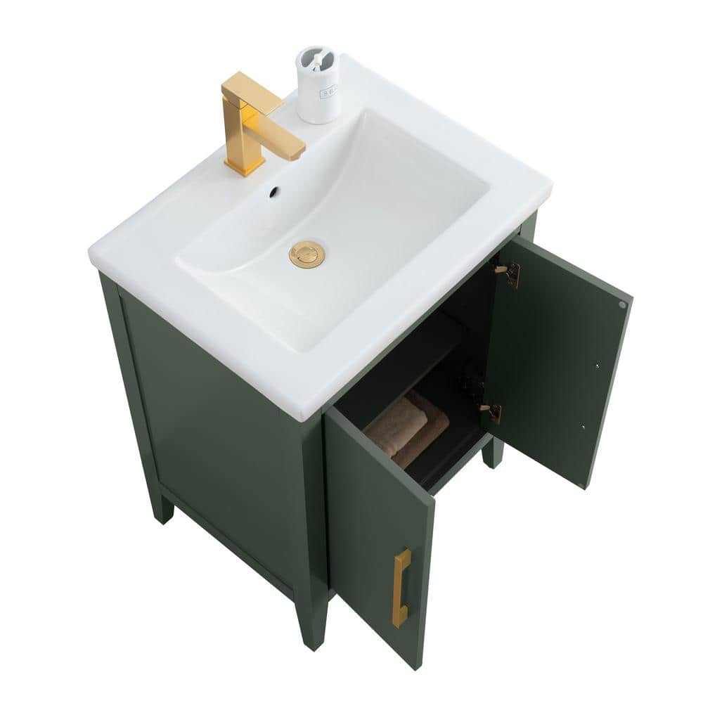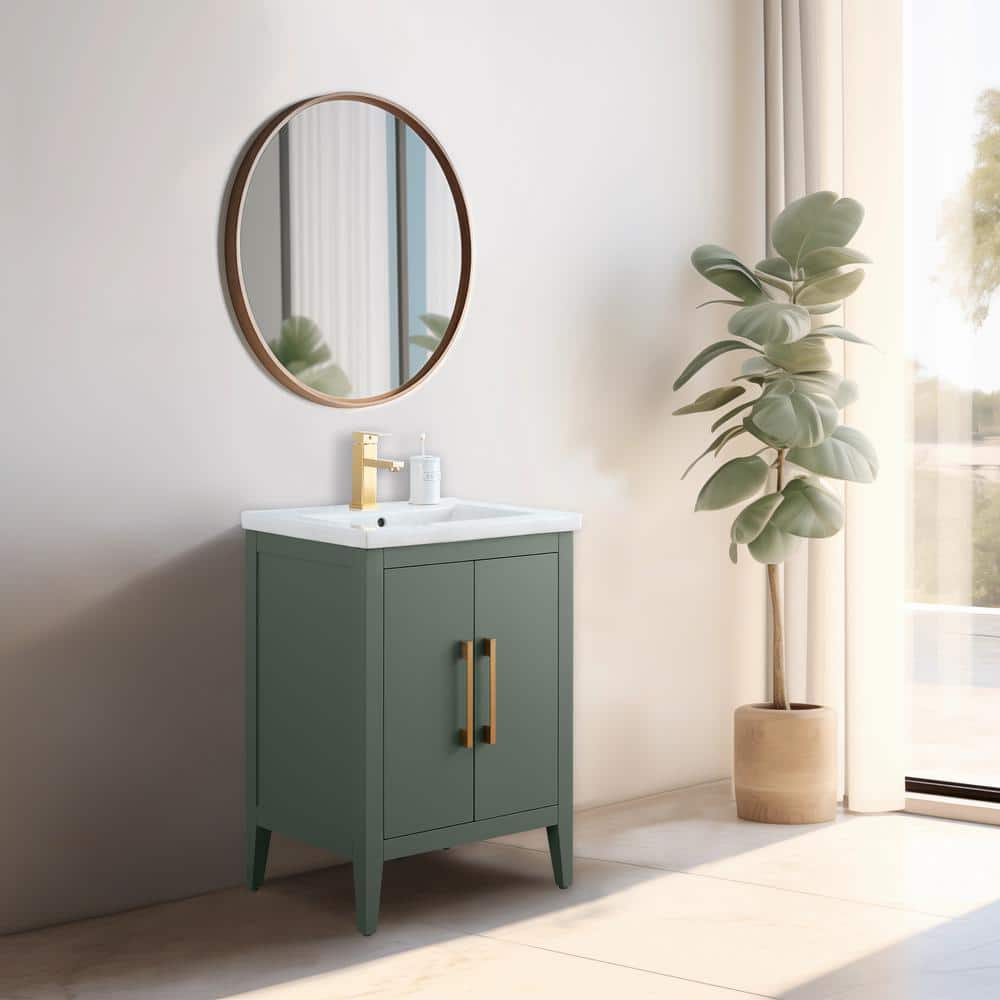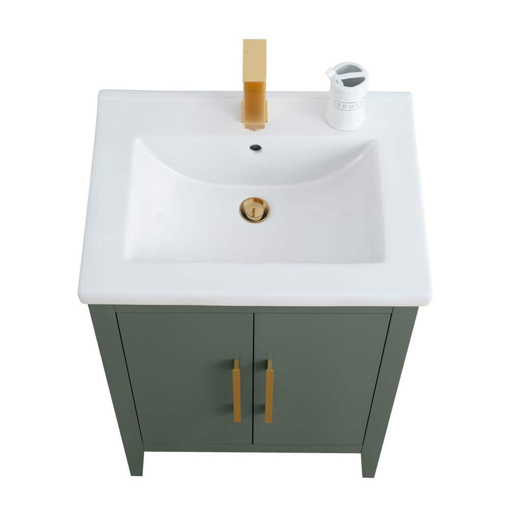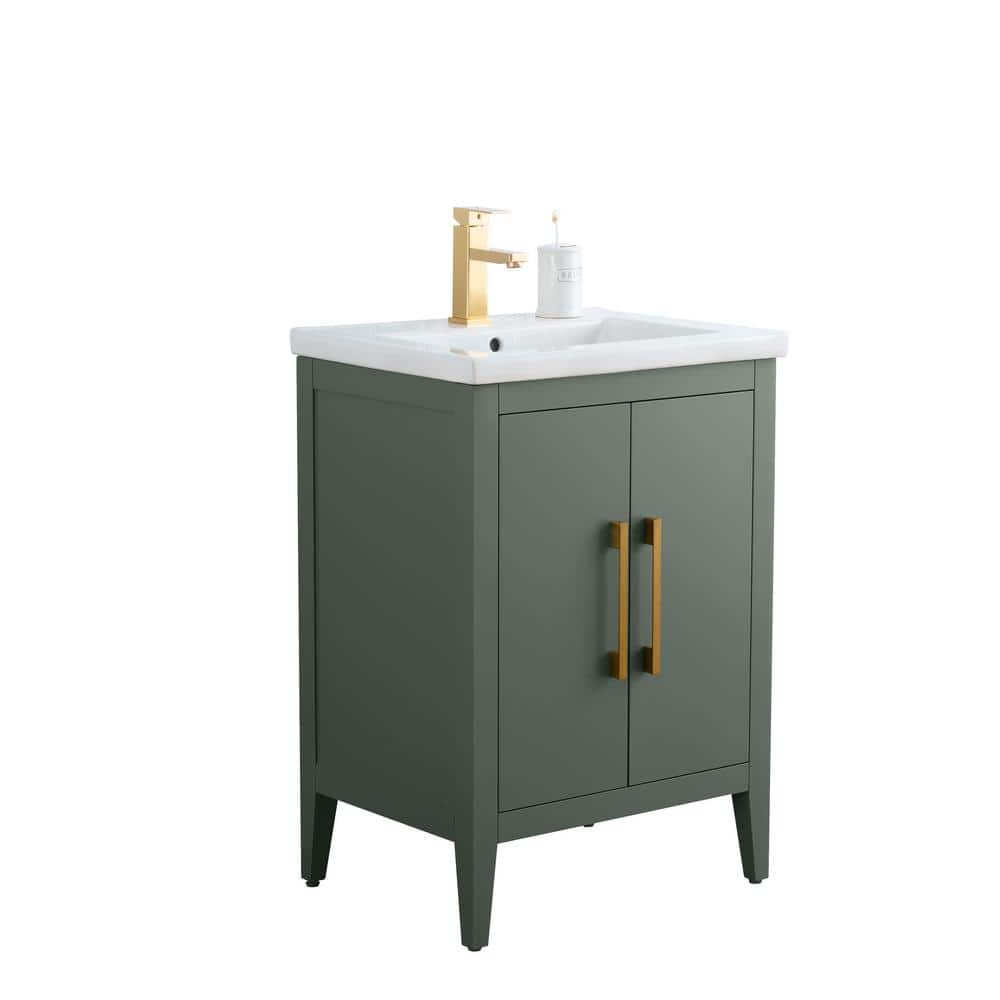 Elevate your bathroom's aesthetic with the Vanity Art 24" Single Sink Bathroom Vanity in Vintage Green. This chic piece combines function and style with its durable poplar wood construction, ceramic countertop, and ample storage for a seamless and elegant addition to your home.