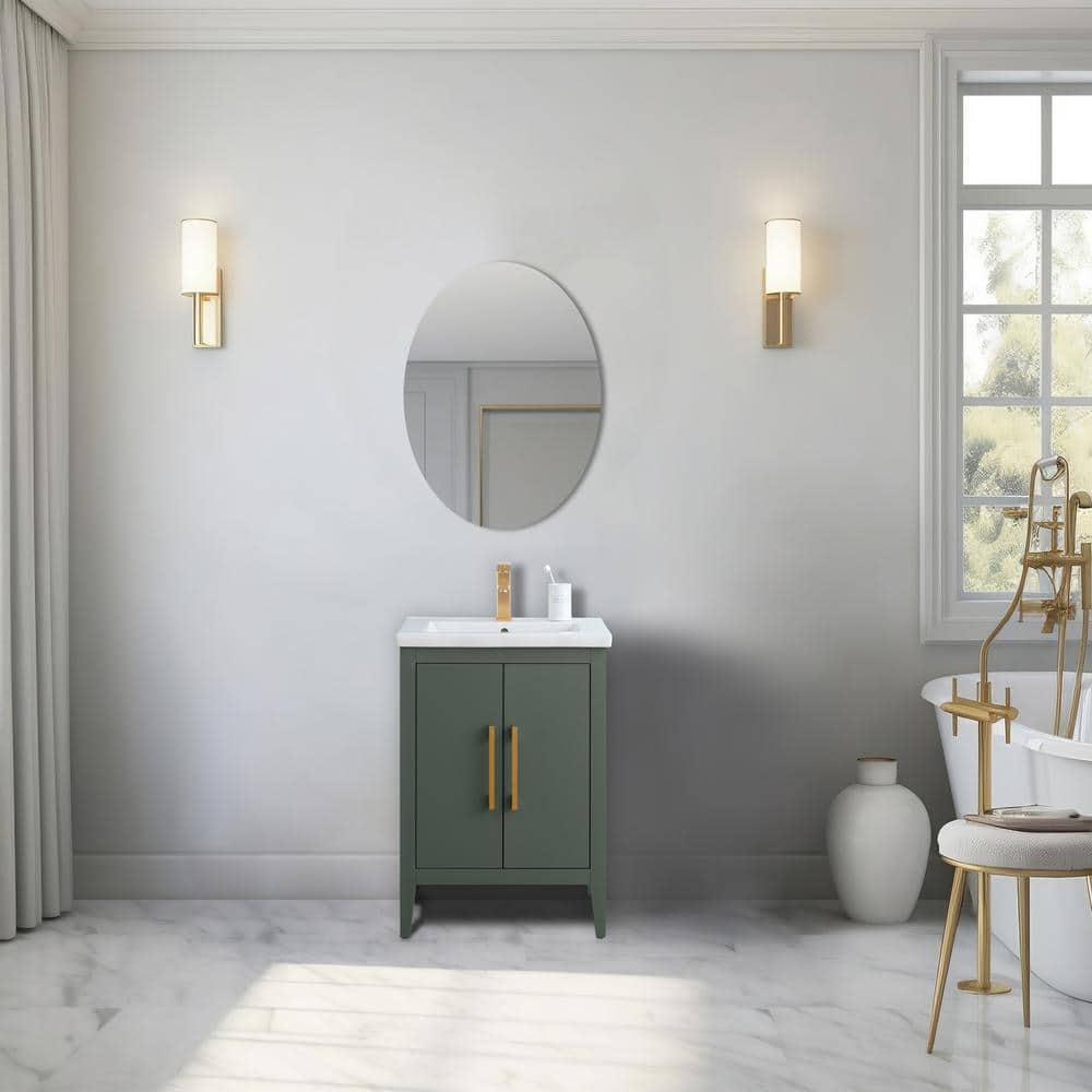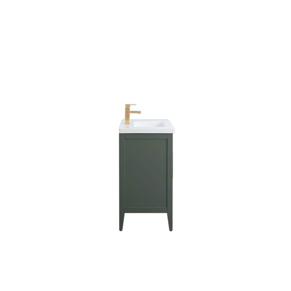 The Vanity Art 24" Bathroom Vanity transforms your bathroom with an exquisite vintage green finish that complements any decor effortlessly. Its standout feature, a clean and polished ceramic countertop, captures light beautifully, highlighting the space's luxurious feel. Pair this vanity with bold, golden hardware for a striking design statement. Essential for those who seek both beauty and functionality, this piece elevates everyday routines into moments of indulgence.