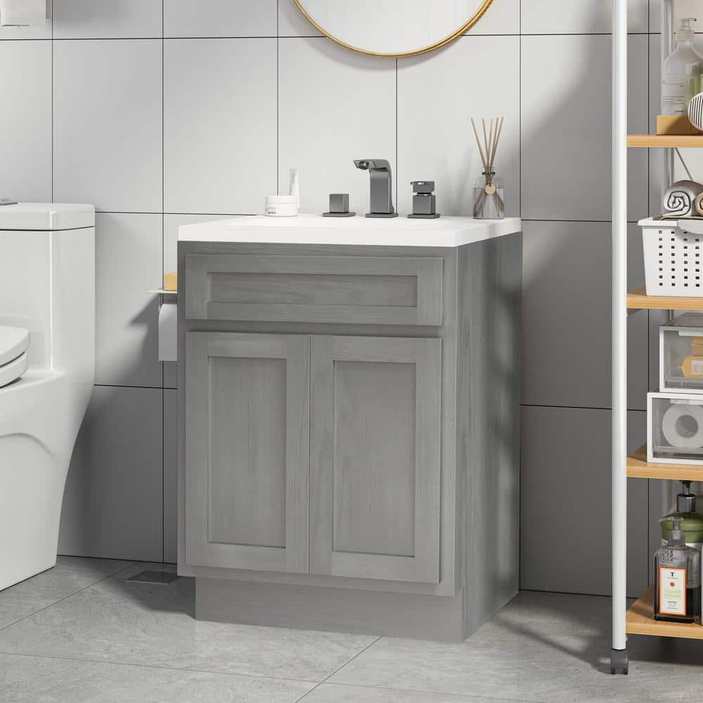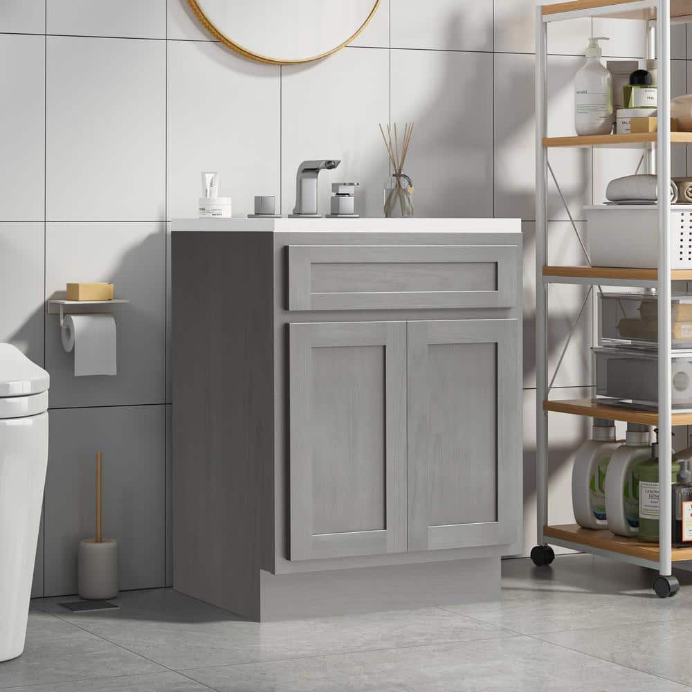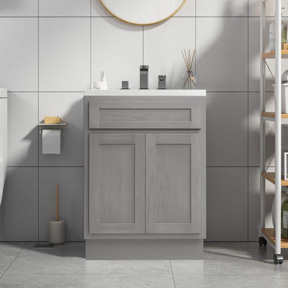 Elevate your bathroom aesthetic with the Vanity Art 24-inch Bath Vanity Cabinet. Crafted from high-quality birchwood, this elegant silver cabinet features soft-closing doors for a smooth, reliable storage solution in any modern bathroom setting.