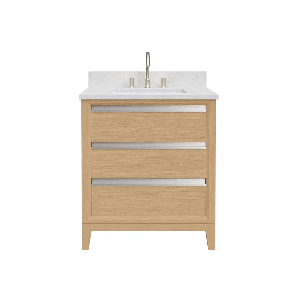 Natural Oak 30" Bathroom Vanity with Marble Top