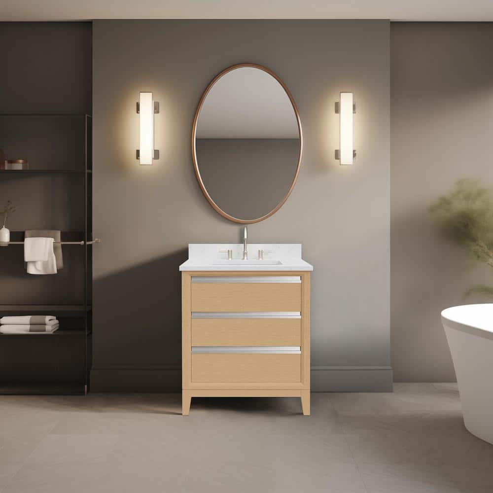 Vanity Art 30 in. W x 22 in. D x 34 in. H Single Sink Bathroom Vanity in Natural Oak with Engineered Marble Top in White