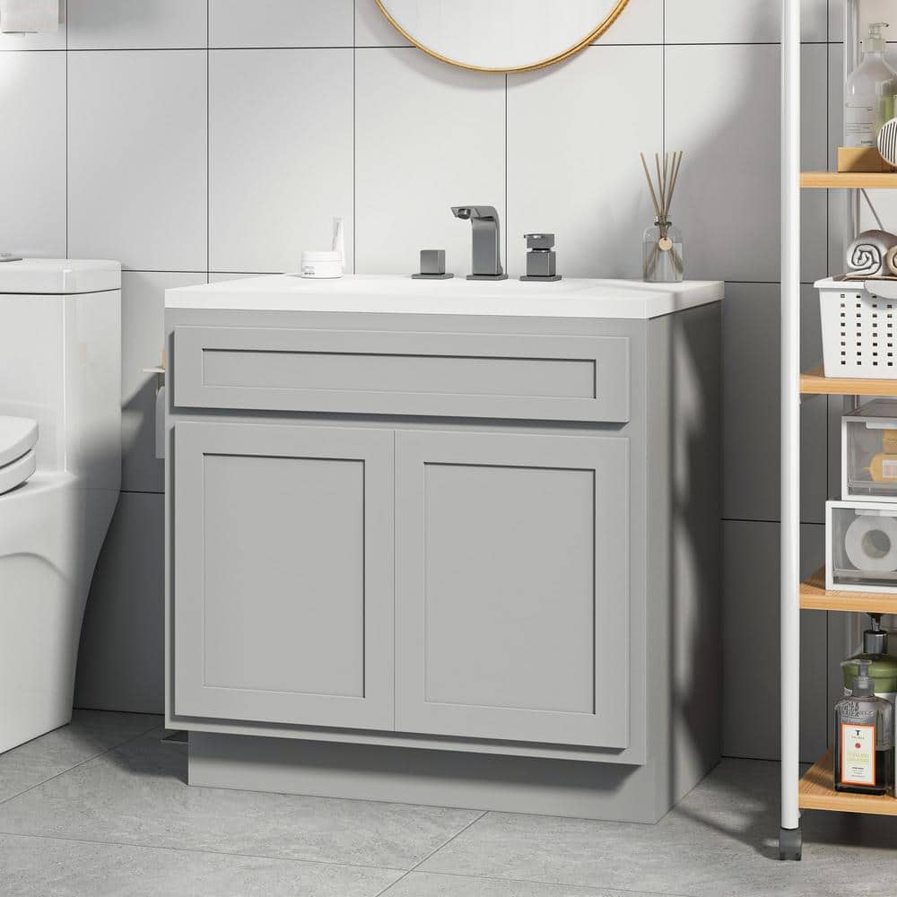 The Vanity Art 33" Bath Vanity Cabinet in Gray offers a timeless design with functional storage solutions. Crafted from durable solid birchwood and featuring soft-close doors, this cabinet combines traditional aesthetics with modern functionality. Perfect for adding a stylish touch to any bathroom without compromising on quality.